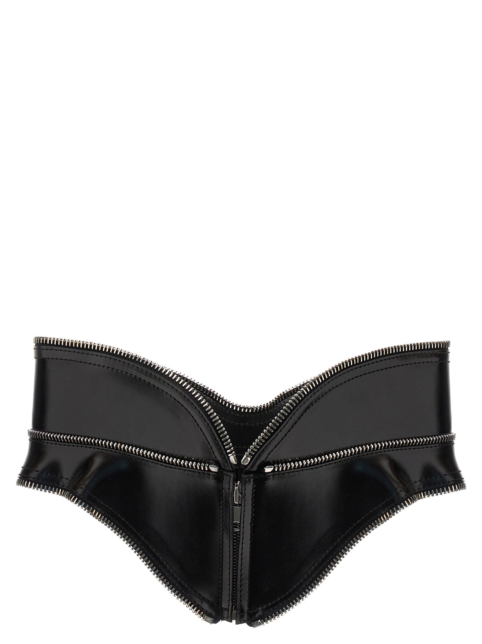 Corset leather belt, Zipper tooth trimming, And back zip closure. Size and Fit - true to size fit