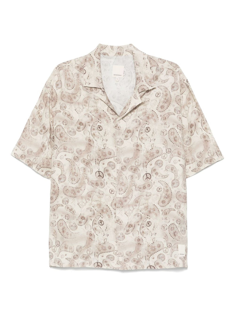 light beige front button fastening logo patch to the front camp collar short sleeves m/c Printed linen blend shirt Size and Fit - This piece fits true to size. We recommend you get your regular size. Model is 1,84m / 6ft 1in wearing size MMade in: Tunisia
