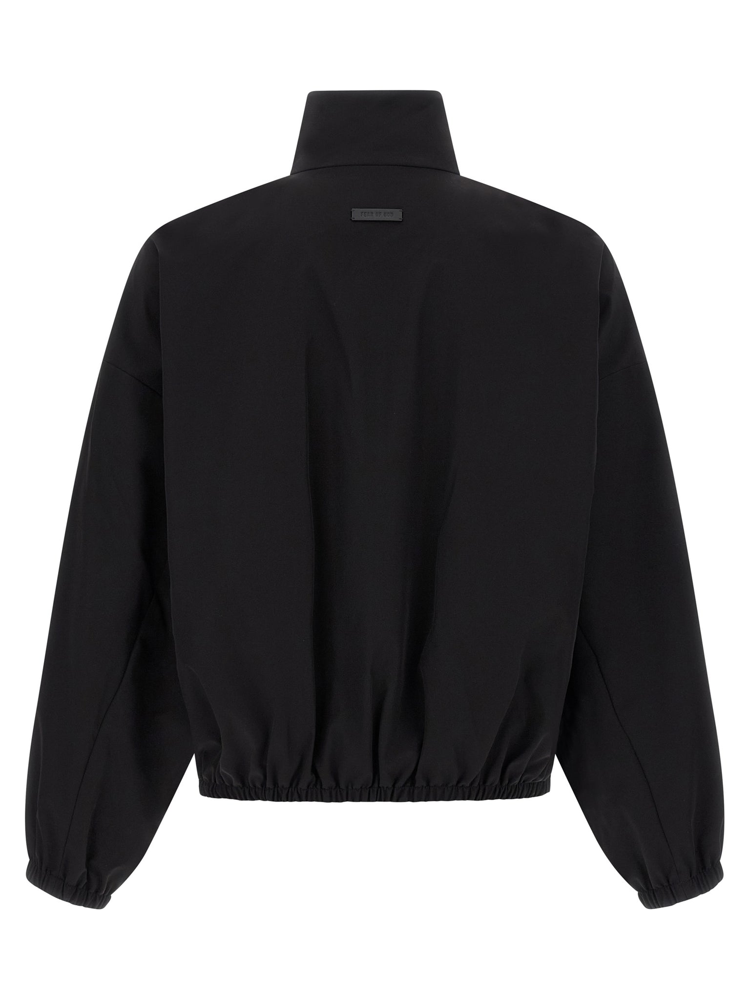 Discover a comfort-fit track jacket from Fear Of God designed in black 'track' synthetic fabric with a high neck and front zip that simplifies layering. The jacket offers practical pockets, long sleeves with elastic cuffs and dropped shoulders, plus an elastic hem for secure movement and a leather logo patch on the back for refined branding. Ideal for fall layering, this piece balances functional details with a clean silhouette for everyday wear.
