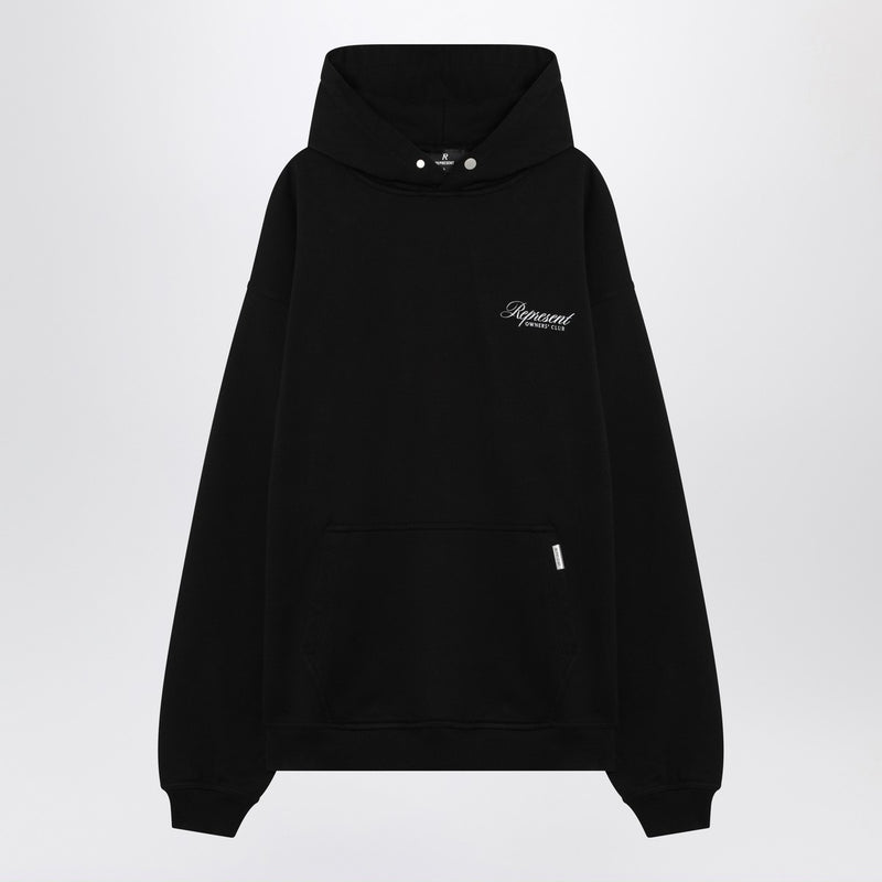 Black cotton Represent hoodie featuring Represent Owners'' Club contrasting logo print on the back, a front pouch pocket with logo metal plaque, ribbed edges, logo lettering on the chest and an oversized fit. Size and Fit - Model wears size L Model measurements: Height: 185 cm Chest: 100 cm Waist: 83 cm Hips: 92 cmMade in: Portugal