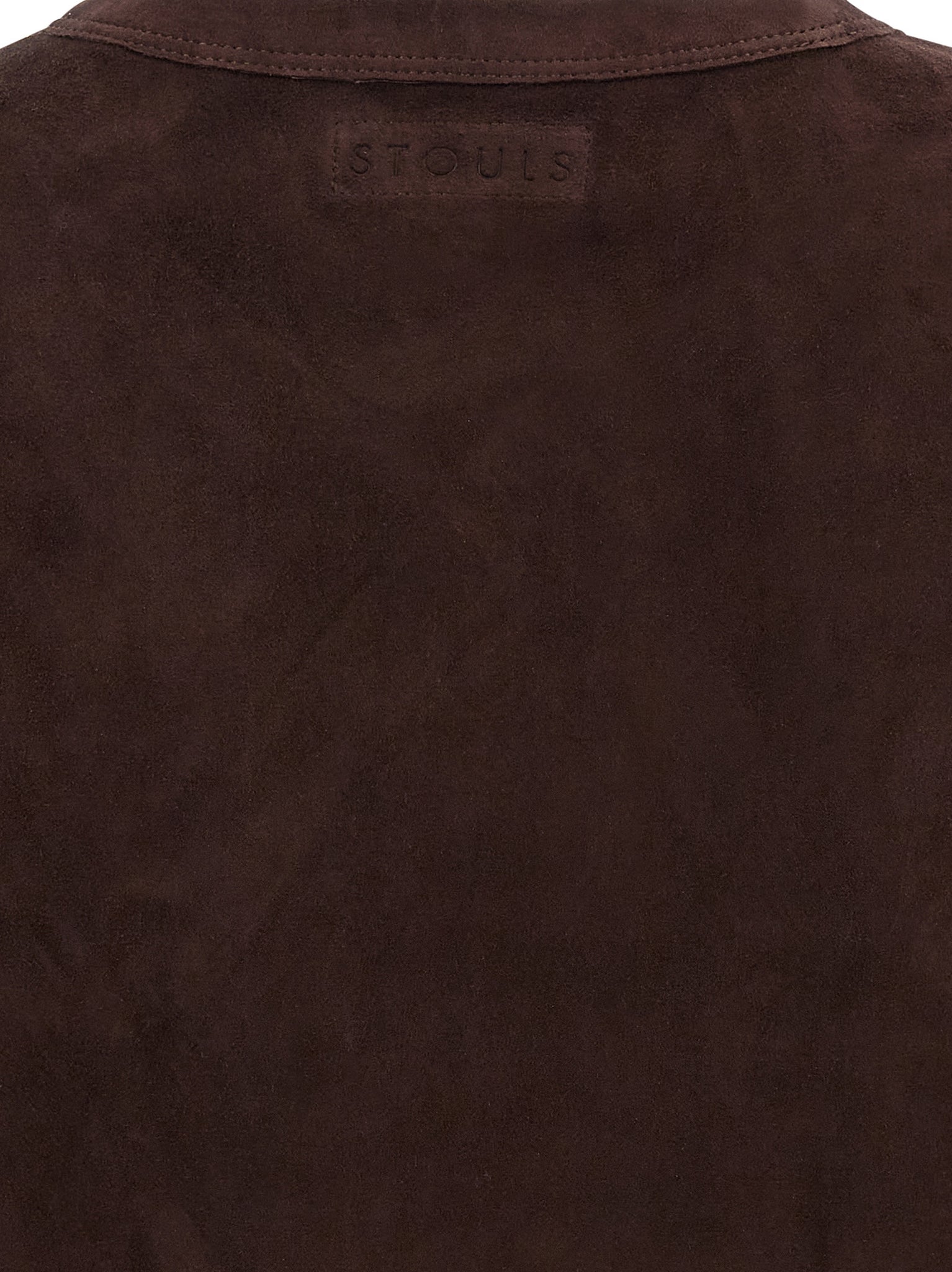 Discover a refined suede velour tee from Stouls that balances soft texture with a structured crew neck and short sleeves for easy everyday wear. The tone-on-tone logo embroidery at the back and raw cut hem add subtle design interest while maintaining a true-to-size fit. Ideal for fall layering in a warm brown, this top pairs cleanly with tailored trousers or casual denim for versatile seasonal styling.