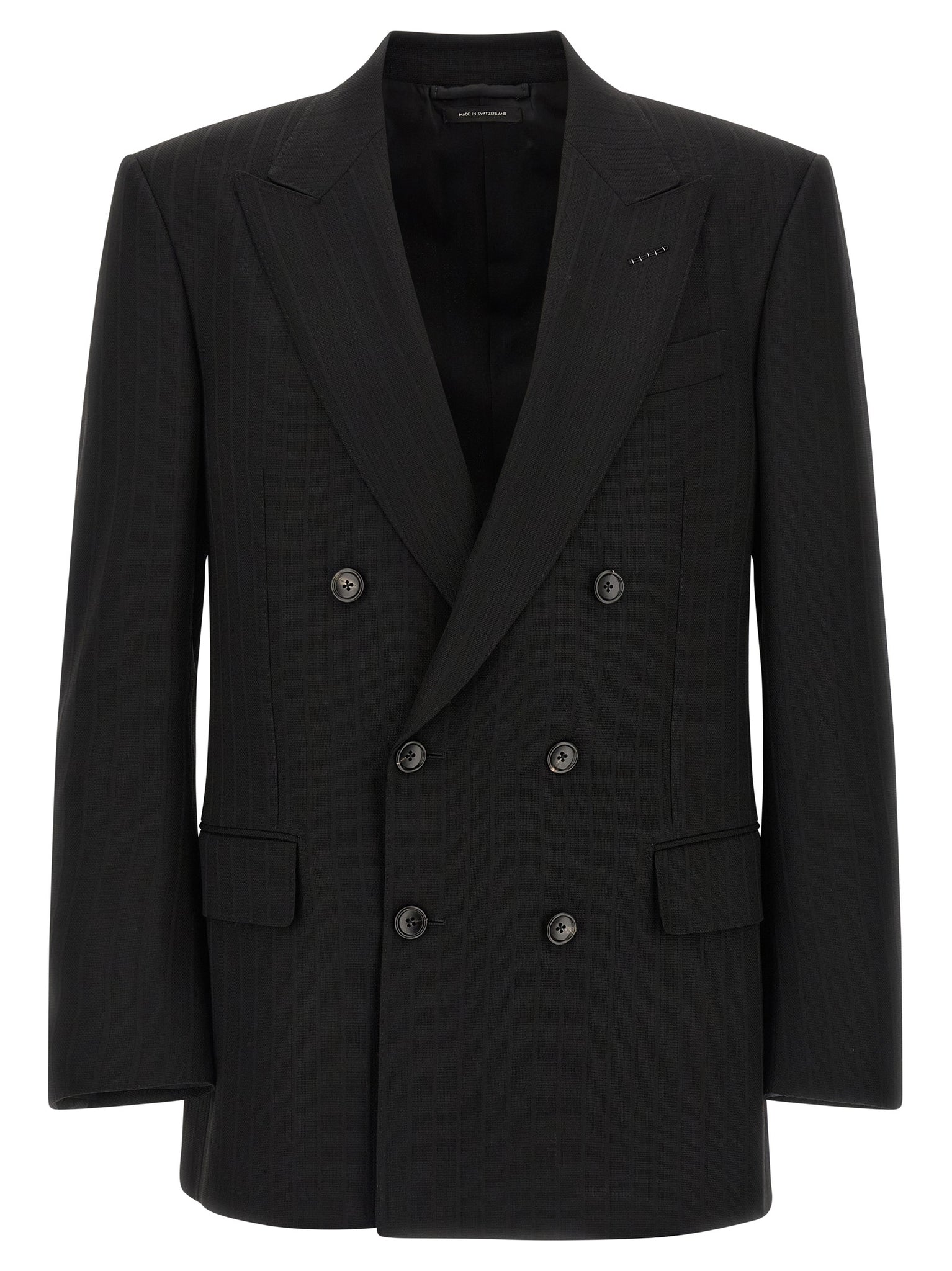 Tom Ford Satin Striped Blazer — Men's Jacket, Black