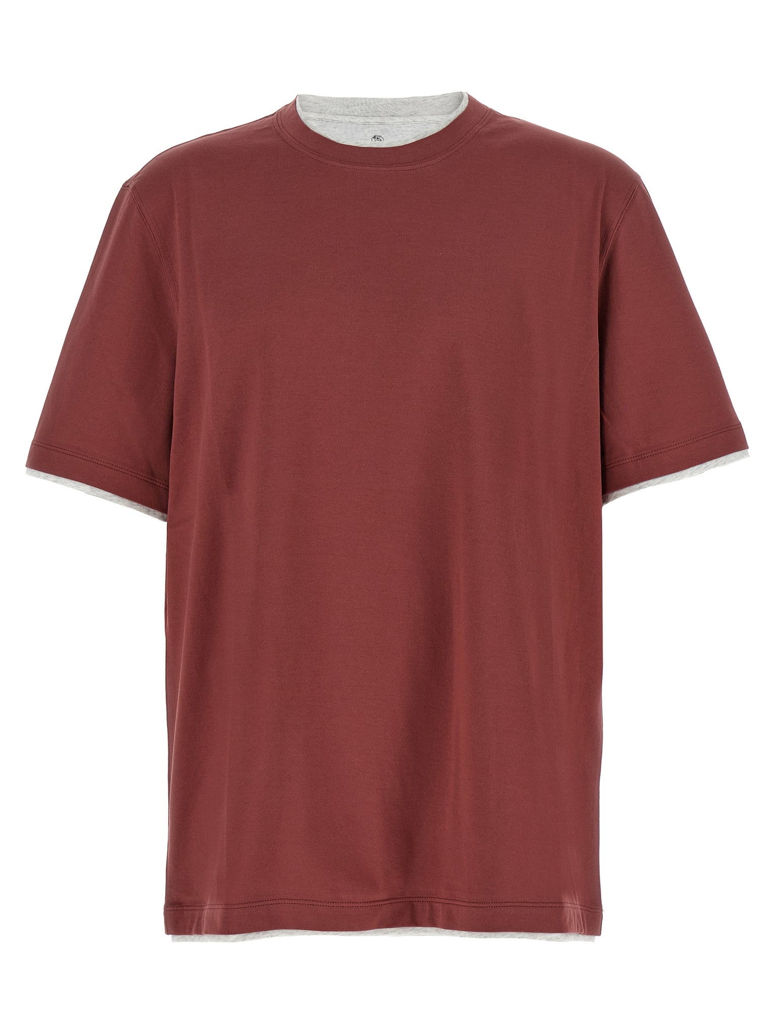 Brunello Cucinelli Red Double Layer T-shirt for Men