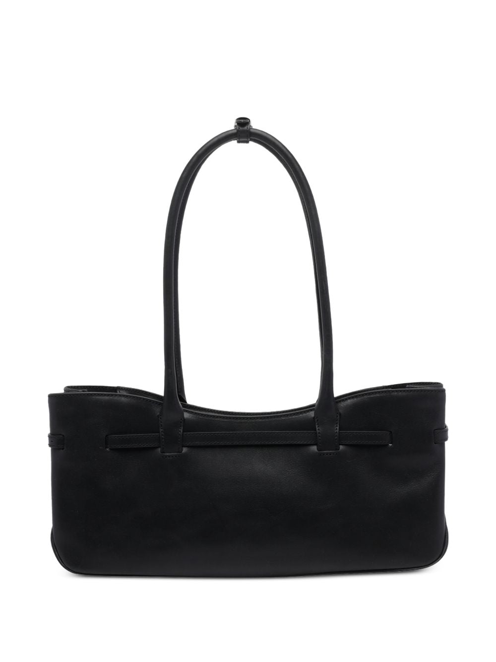 black leather zip closure inner open pocket shoulder strap Grandma leather shoulder bag
