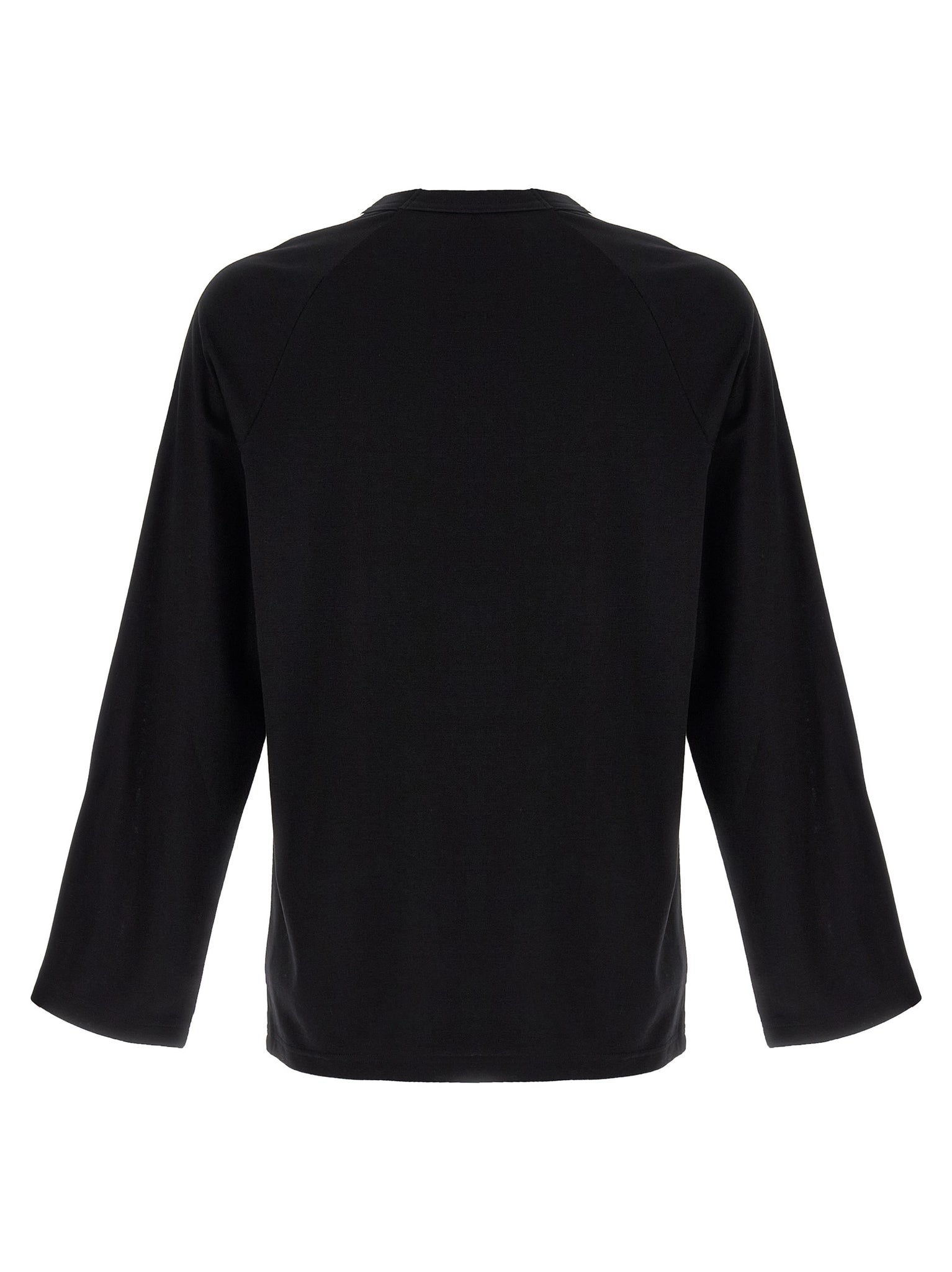 'Y-3 Long Sleeve Tee 3-Stripes' T-shirt in lyocell, nylon and sheep wool blend with contrasting details, tone-on-tone logo at the front, crew neck, long flared sleeves with dropped shoulders, part of the strips are reinforced with wire. Size and Fit - Relaxed fit