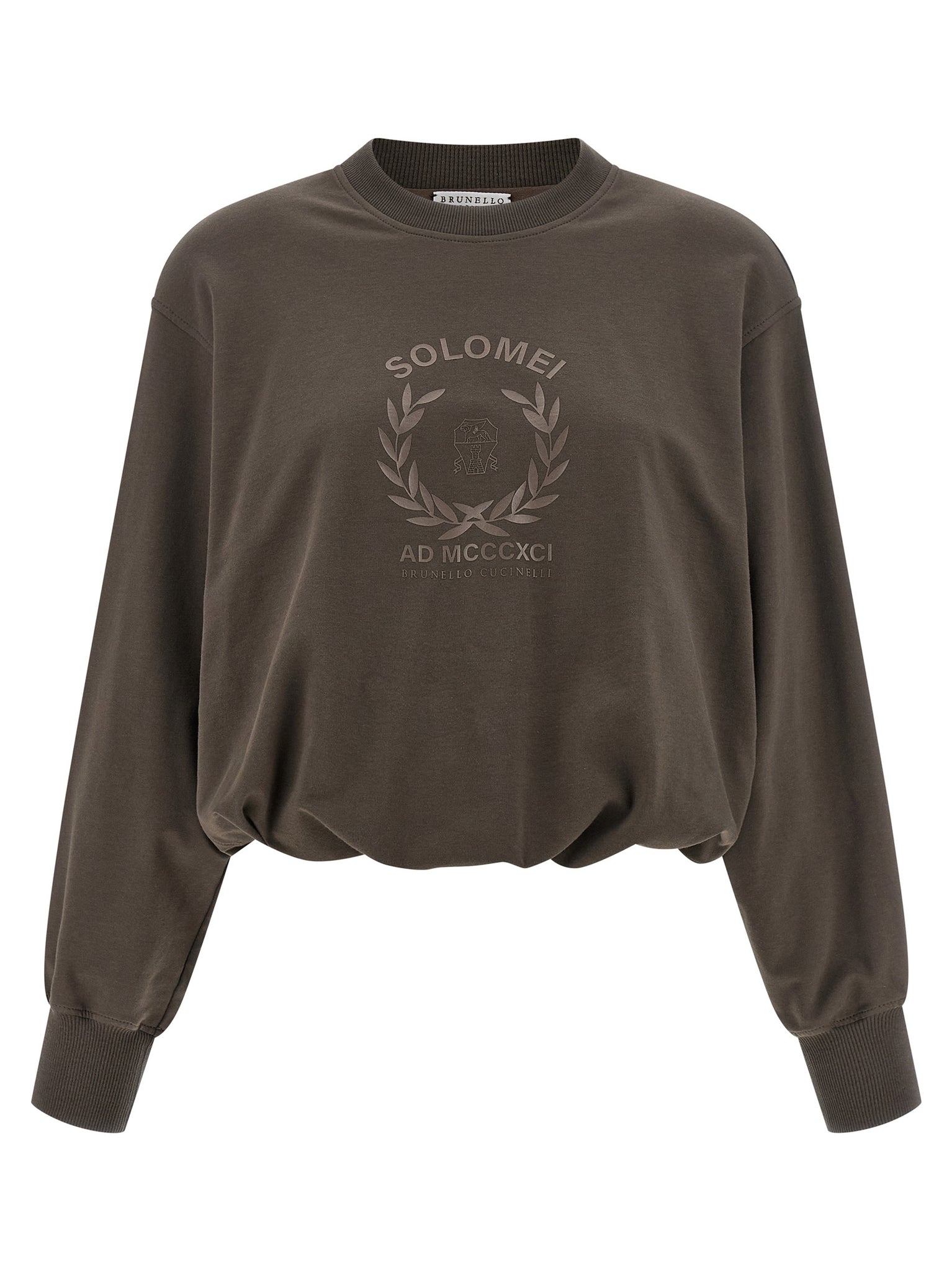Tech cotton sweatshirt, Crew neck with dropped shoulder, Doubled jersy and curled on the hem with elastic, Tone-on-tone 'solomei' print on the front, Long and wide sleeves with knitted cuffs. Size and Fit - True to size fitMade in: Italy
