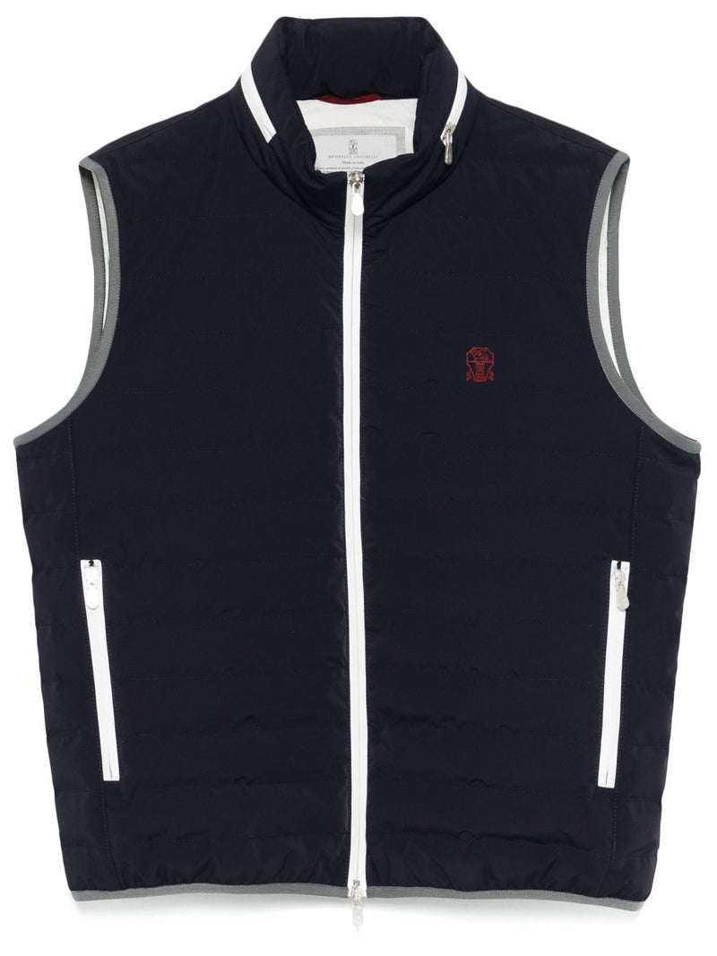 Brunello Cucinelli Jackets Blue — Navy Zip Vest