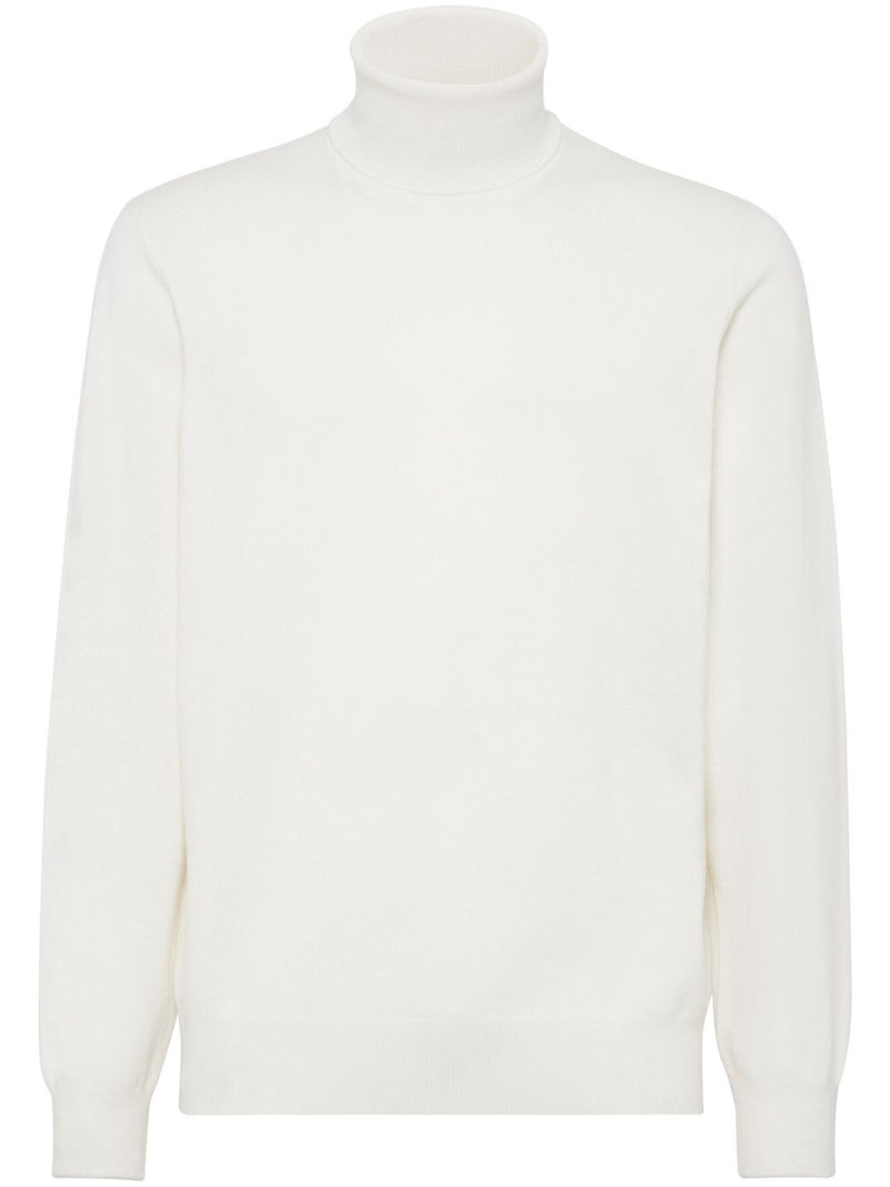 Brunello Cucinelli White Cashmere Sweater — Roll Neck