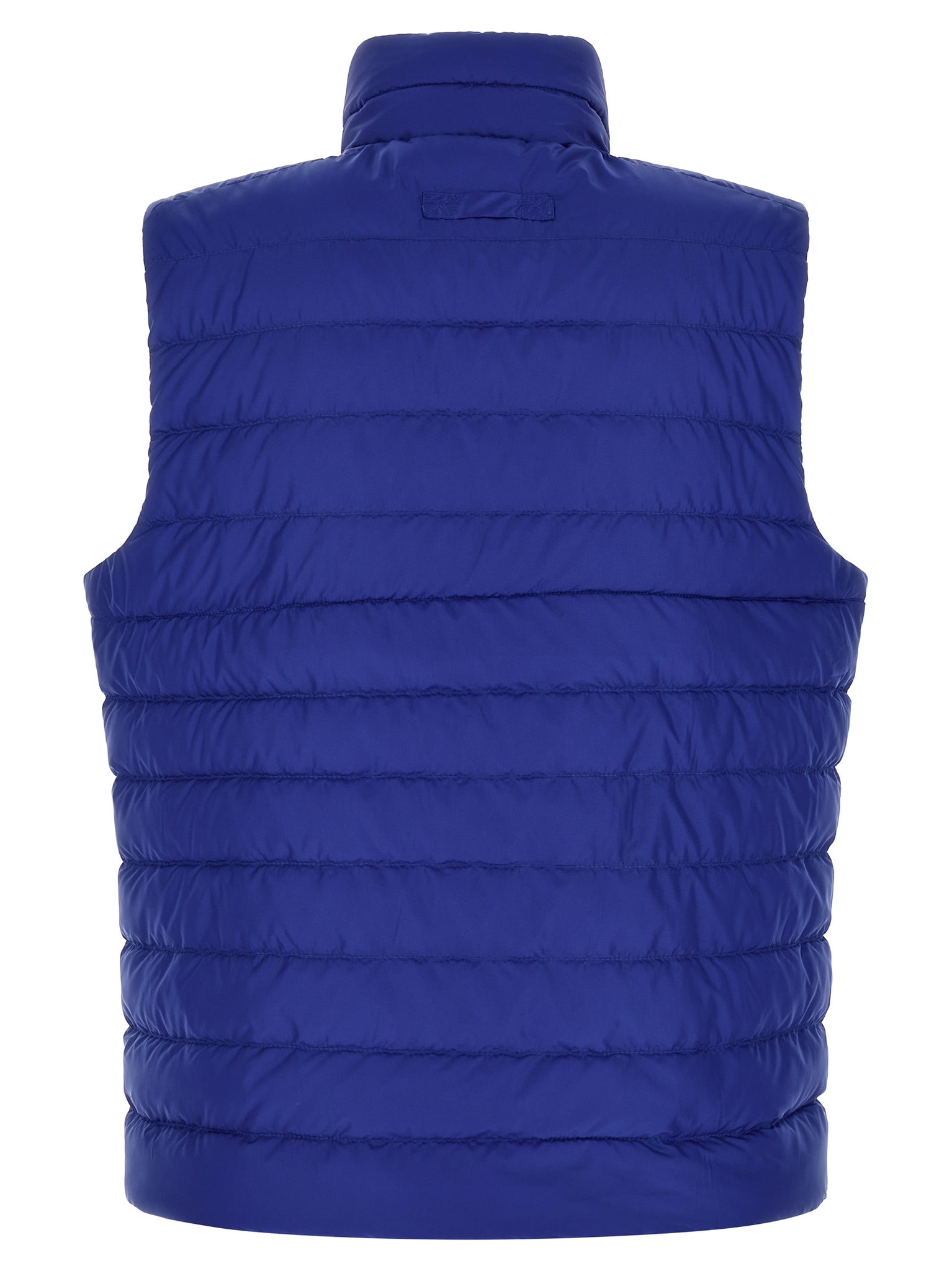 'stratus' vest in quilted technical fabric lightly padded with duck feather, Tone-on-tone logo patch and front zip closure, Standing collar, Pockets, Drawstring on the hem. Sustainable: product made with recycled materials. Size and Fit - true to size fit