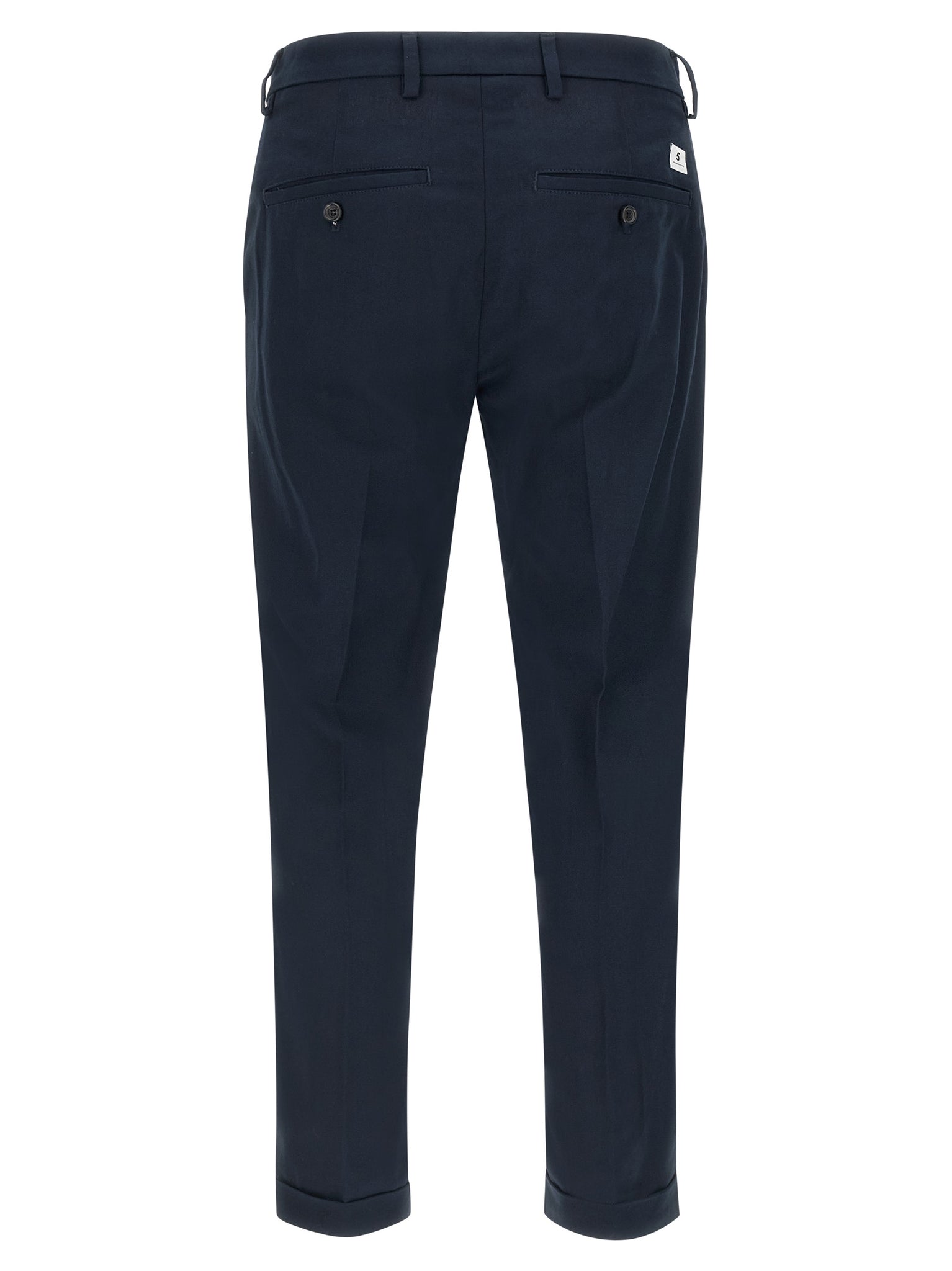 Discover tailored comfort in the Department 5 Destynai Pants, crafted from blue cotton gabardine for a polished yet breathable everyday trouser. These regular-fit chinos feature a front hook-and-zip closure, side and back welt pockets, a straight leg with a pressed front pleat, and a clean turn-up hem for versatile styling. The fit runs true to size, offering reliable proportions for wardrobe pairing and easy dressing.