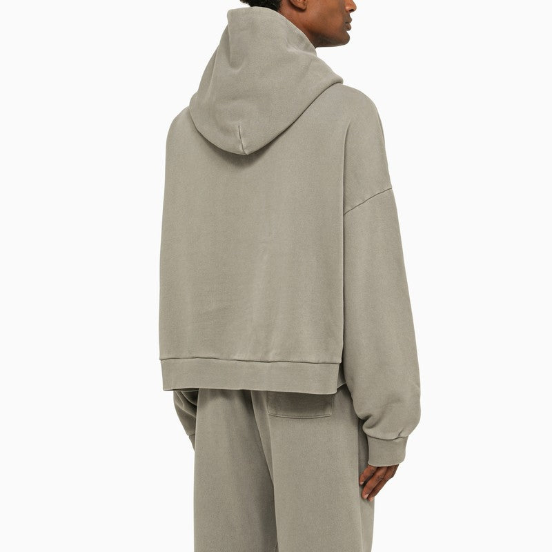 Grey organic cotton hoodie from Entire Studios featuring a long sleeve, fixed hood and pouch pocket. Size and Fit - Model wears size L Model measurements: Height: 187 cm Chest: 102 cm Waist: 76 cm Hips: 92 cm