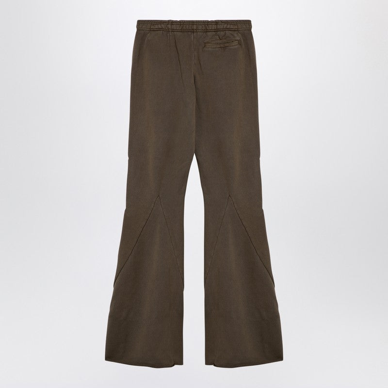 Military green organic cotton flared trousers from Entire Studios featuring an elasticated waistband, a back welt pocket and a raw cut hem. Size and Fit - Model wears size S Model measurements: Height: 178 cm Chest: 77 cm Waist: 60 cm Hips: 87 cm