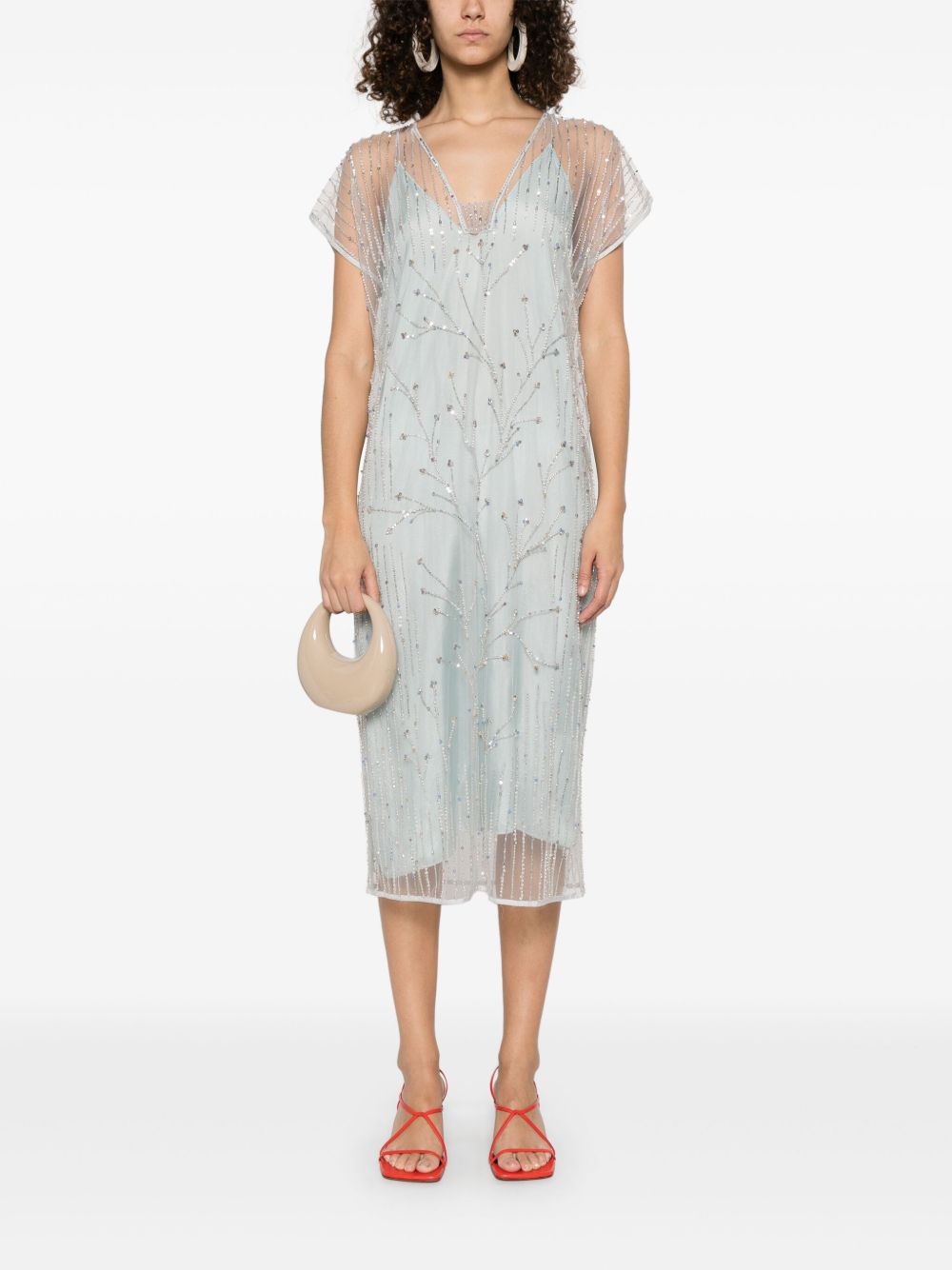 white internal slip dress bead embellishment horizontal stripe pattern scollo v, c/sottoveste Embroidered tulle long dress Size and Fit - This piece fits true to size. We recommend you get your regular size. Model is 1,75m / 5ft 8in wearing size 1 (NUM)