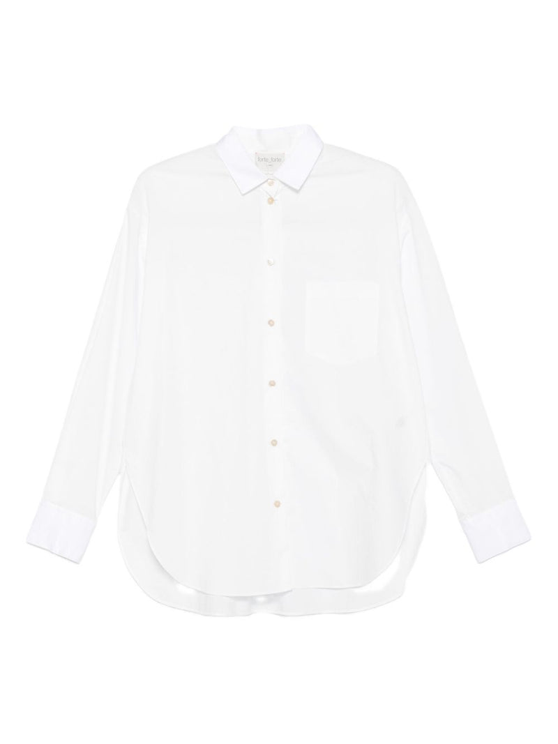Discover a refined white shirt from Forte Forte that balances polished tailoring with everyday ease, offering a classic collar, button fastening and a curved hem for smooth layering. The cotton fabric and long sleeves keep wear comfortable while the single chest pocket adds subtle utility. Designed for adult women and suited to fall wardrobes, this piece compares well with staple shirts when you want clean lines and lasting comfort.