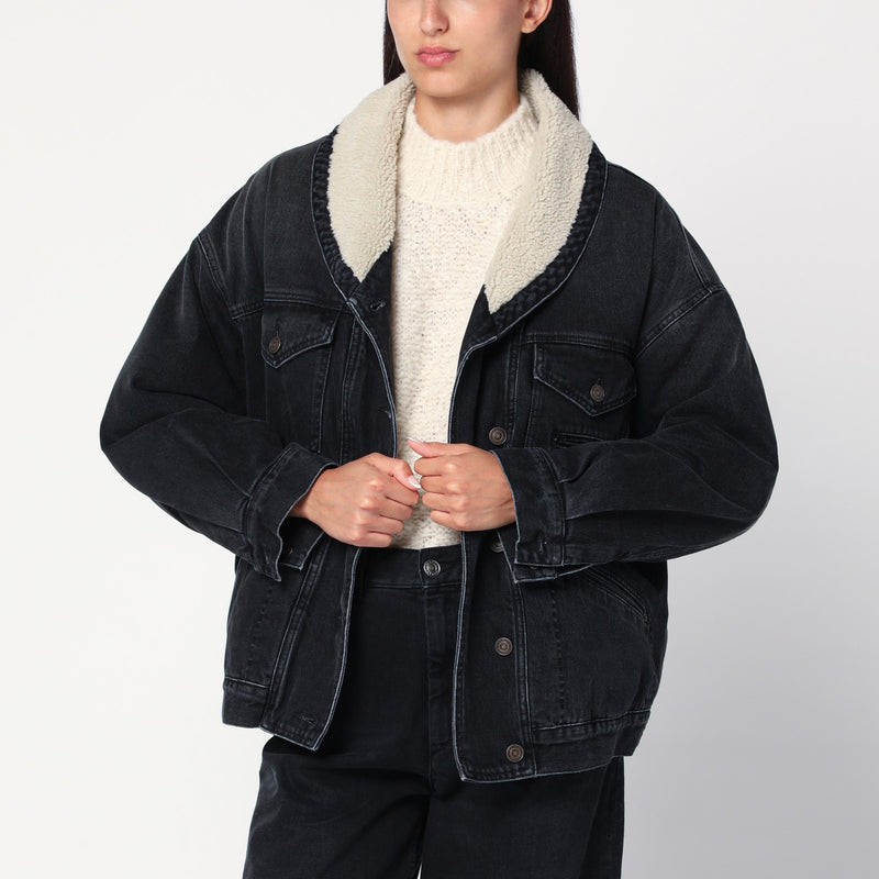 Isabel Marant Pimia jacket — black denim with faux shearling