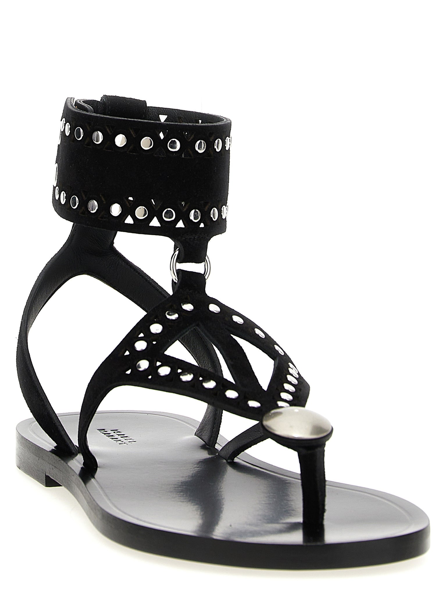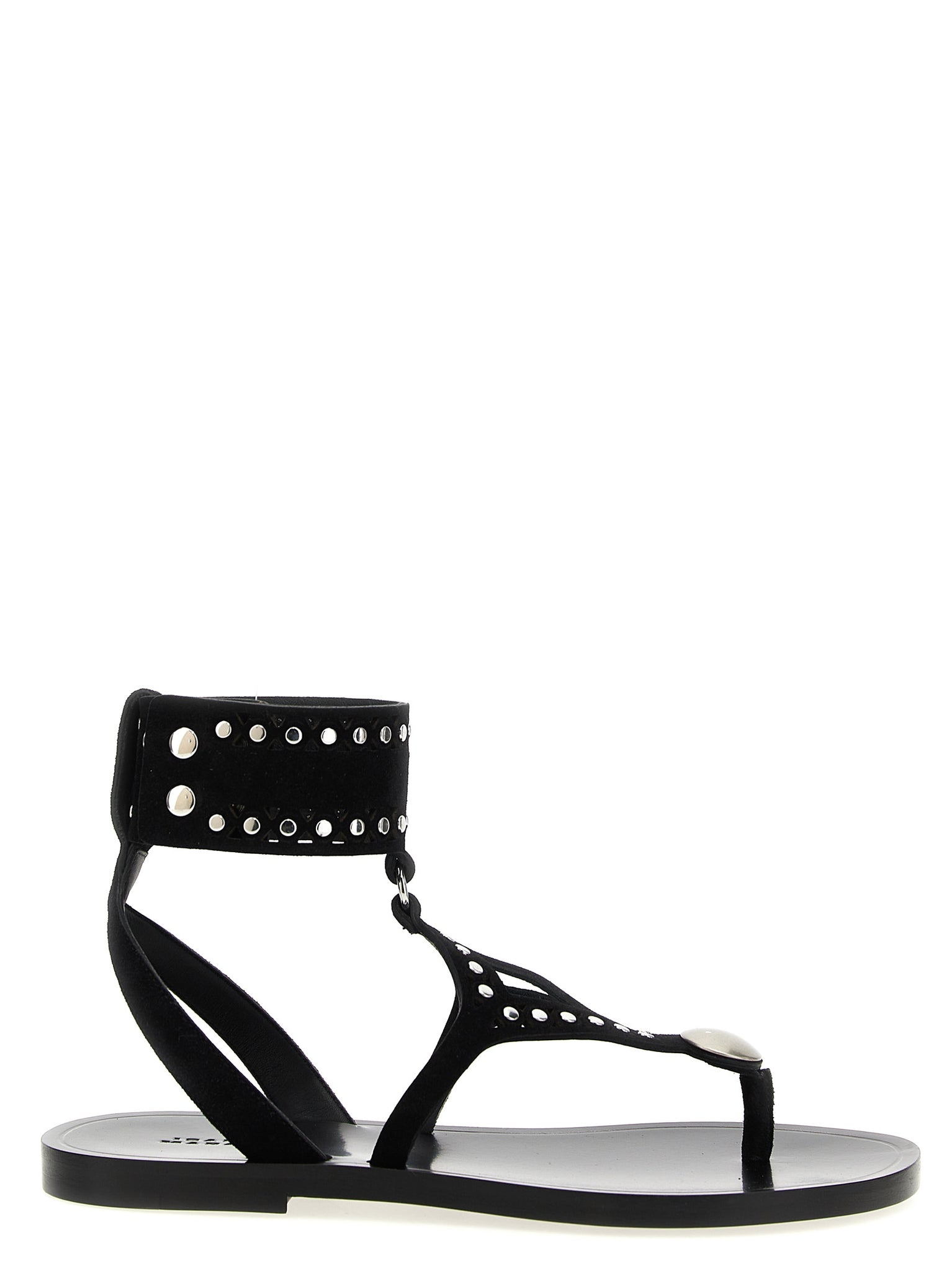 Edil' suede sandals with cut-out details and all-over stud details, Flip-flop style, Adjustable strap with ankle snap buttons, Leather sole. Size and Fit - EU WOMEN