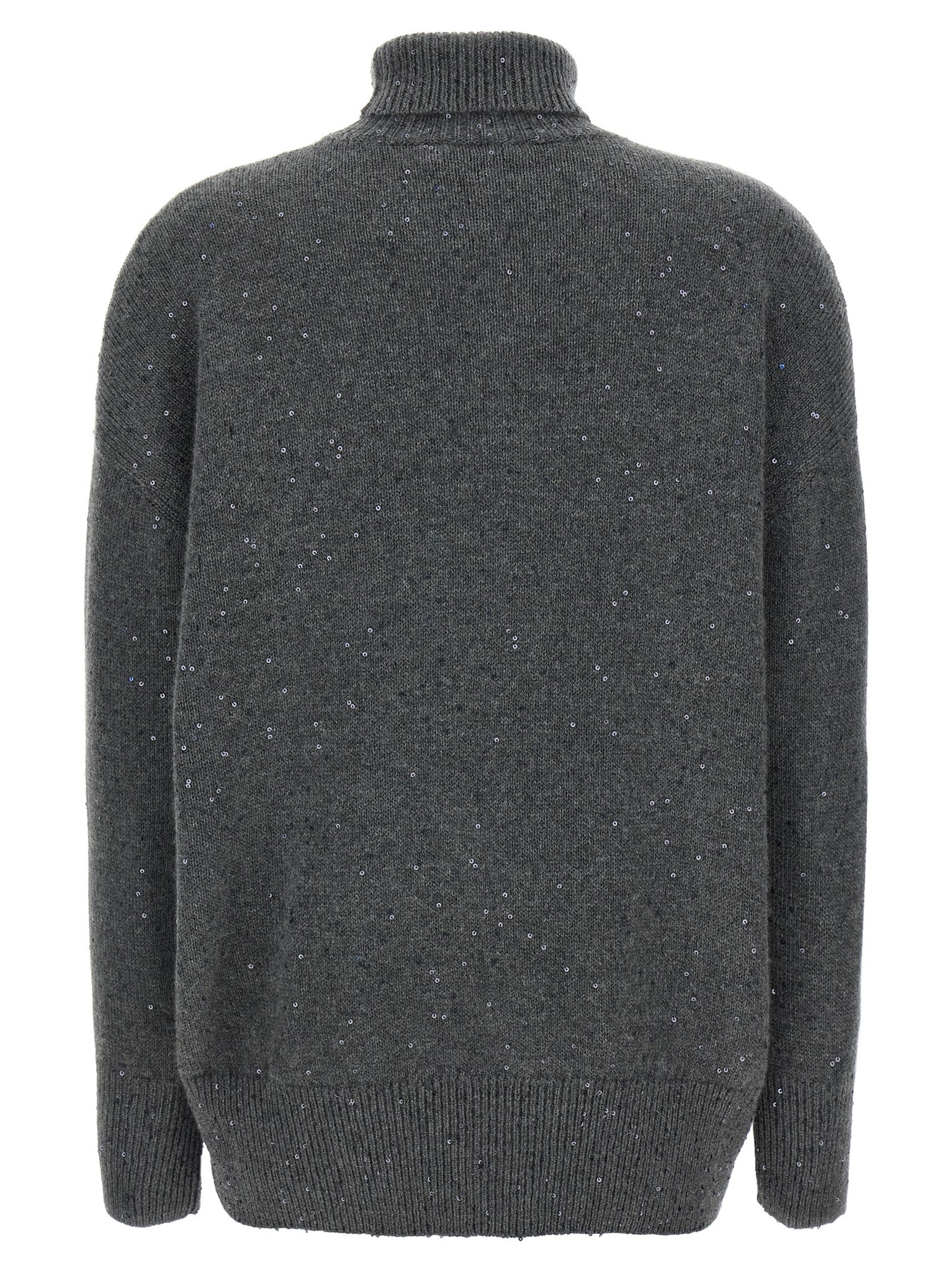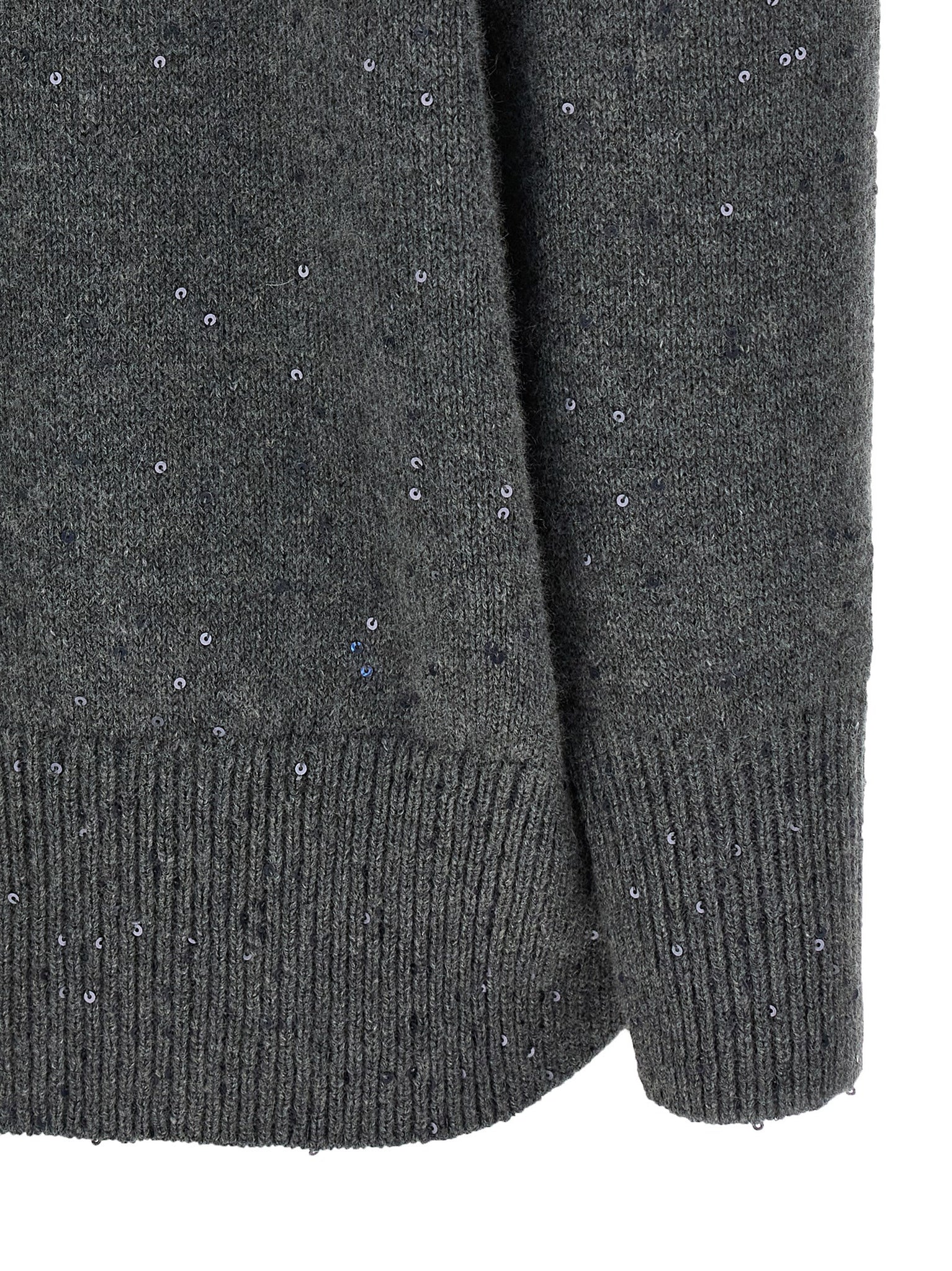 Cashmere blend sweater with high neck, all-over microsequin embroidery detail, long cuffed sleeves. Size and Fit - True to size fit