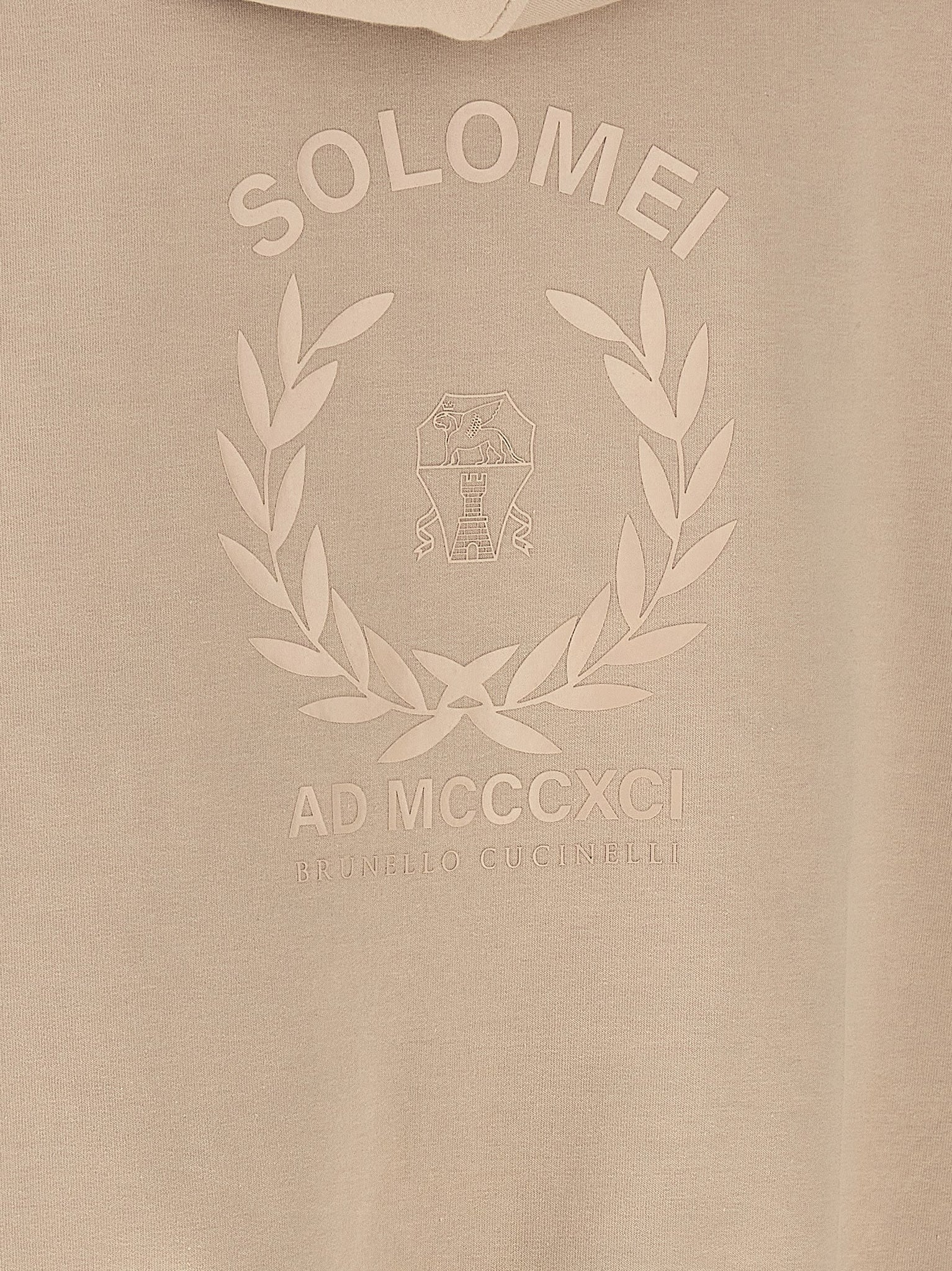 Lightweight stretch cotton hoodie with tone-on-tone 'solomei ad mcccxci' print on the back, Front zip closure, Pockets, Long sleeves with cuffs and dropped shoulders. Size and Fit - Comfort fitMade in: Italy