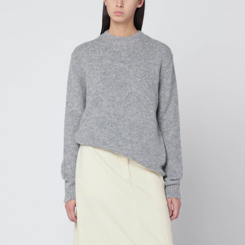 Light grey wool blend crew neck sweater by Jil Sander, featuring long sleeves and ribbed edges. Size and Fit - Model wears size S Model measurements: Height: 178 cm Chest: 83 cm Waist: 63 cm Hips: 91 cmMade in: Italy