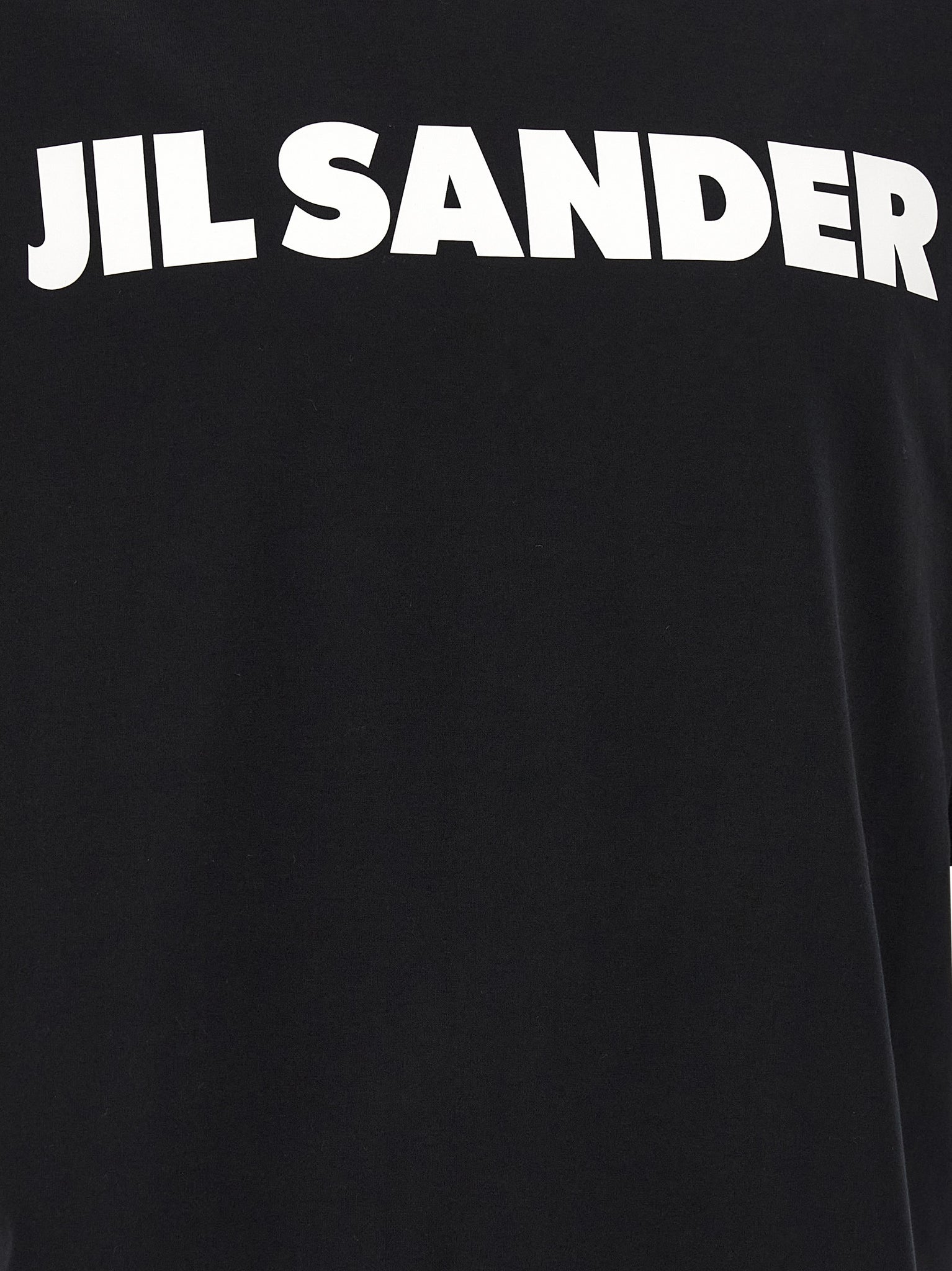 Light cotton jersey t-shirt with contrast 'jil sander' logo print on the front, Crew neck, Short sleeves with dropped shoulders. Size and Fit - oversized and boxy fit