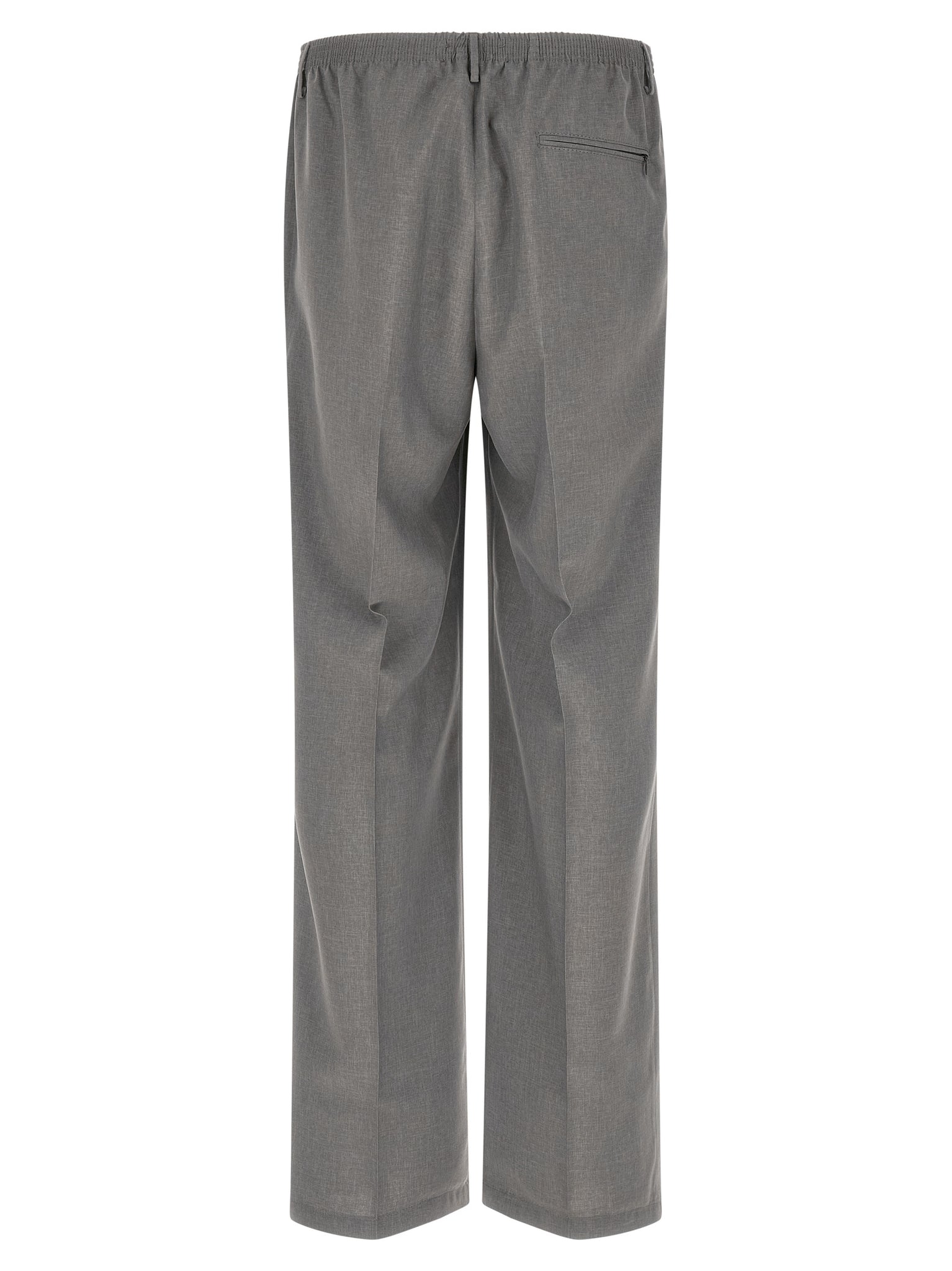 Discover a tailored yet comfortable trouser that balances polished style with everyday ease; the elastic waistband and slightly stretch fabric ensure mobility while the straight leg and pleats maintain a refined silhouette. Functional details include pockets and a Trompe l'oeil flap that add visual interest without bulk, and the stretched pleat preserves shape through wear. Designed for a true-to-size fit, these gray trousers work well for both smart-casual and office wardrobes.