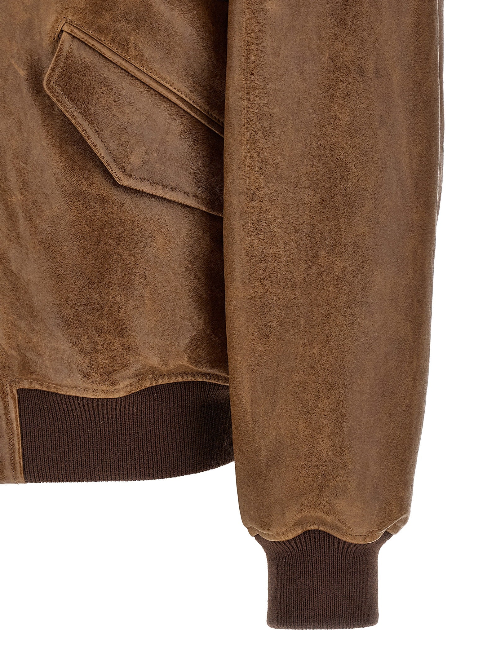 Vintage hammered lambskin bomber jacket with ribbed stretch wool knit details, Shirt collar, Zip and front snap button closure, Pockets, Long sleeves with cuffs and dropped shoulder, Headband, Viscose blend and padded cotton lining, And interior pocket. Size and Fit - Oversized fitMade in: Italy