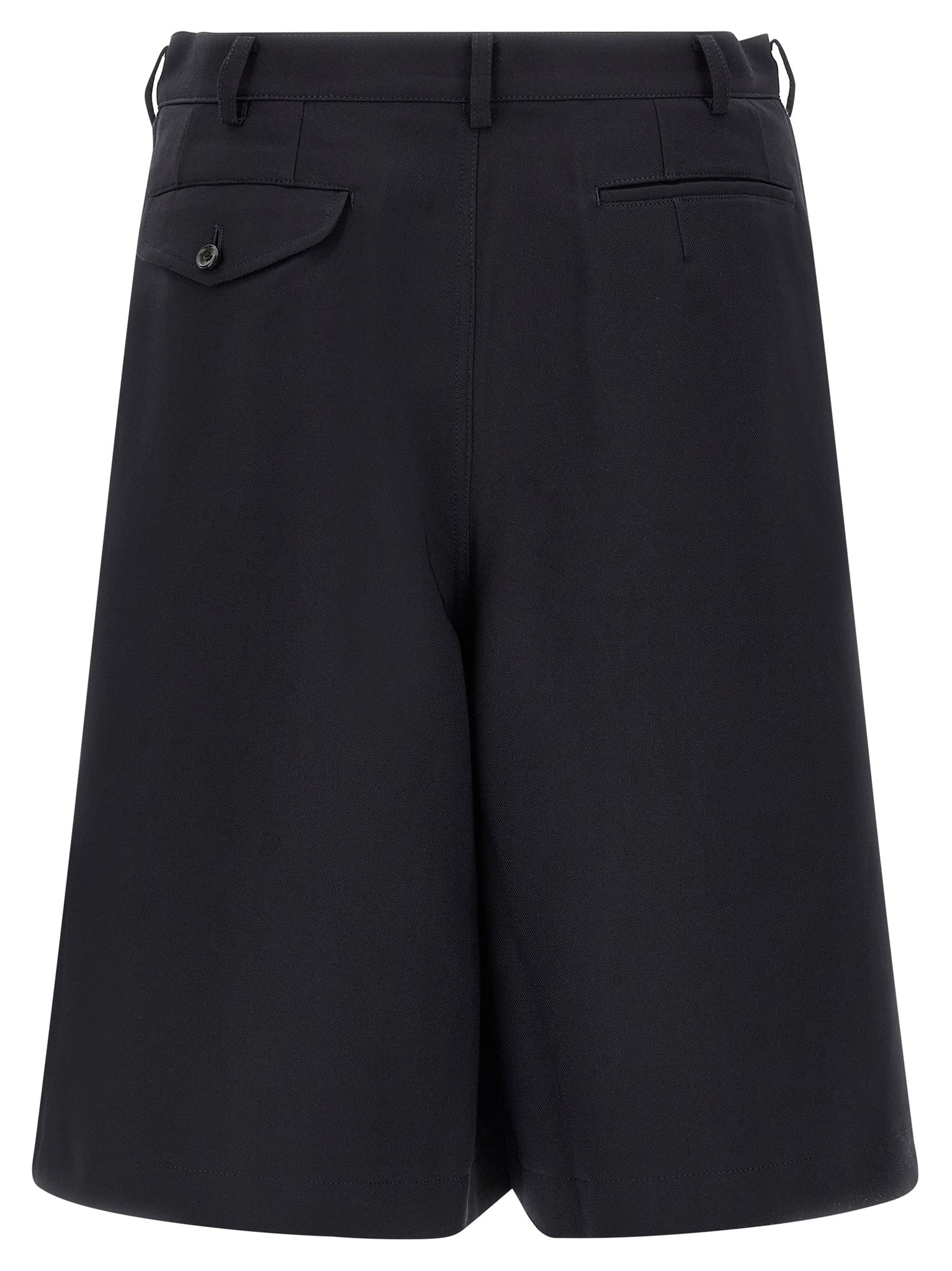 Bermuda shorts in herringbone fabric, Front zip and button closure, Wide leg style, Loops at the waist, Side pockets, Side zip inserts, Back welt pockets with flap and button. Size and Fit - True to size fit