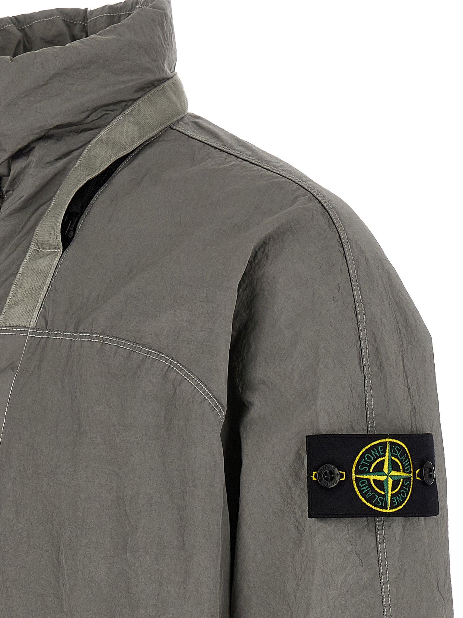 Slightly water-repellent nylon metal watro bomber jacket with iridescent metallic appearance with ribbed stretch knit details, Stand-up collar with removable hood, Front hidden zip closure, Pockets, Long cuffed sleeves, Logo badge, Headband. Size and Fit - true to size fit