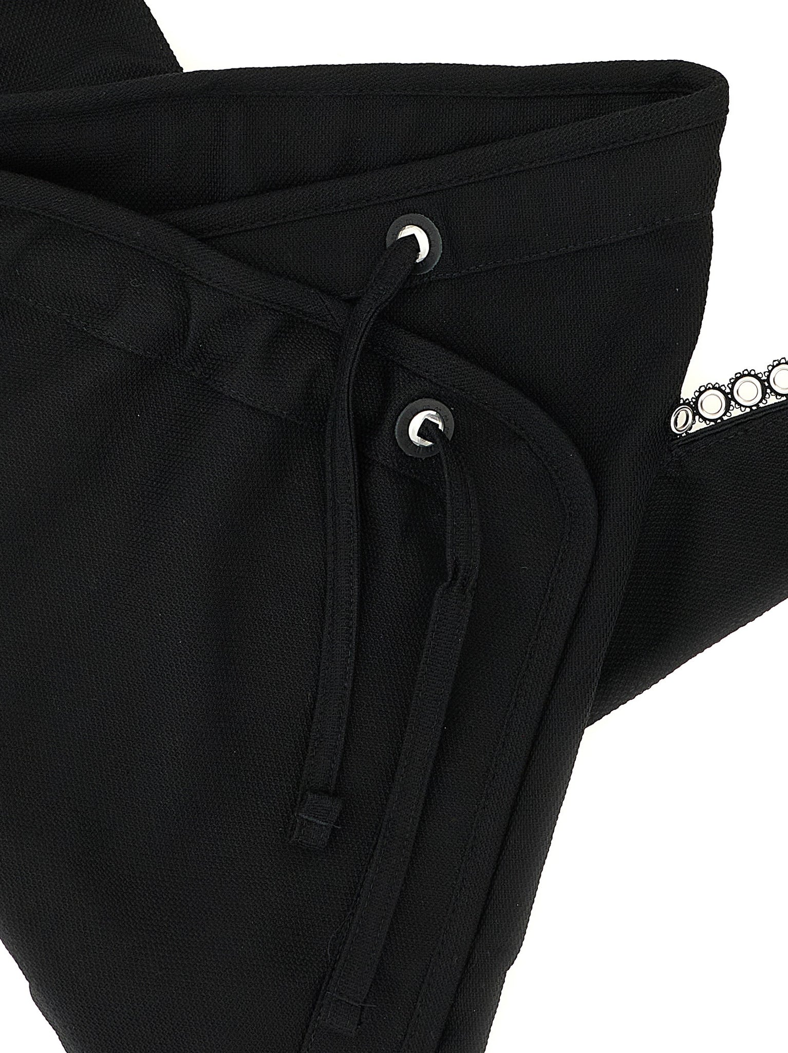 'kest' piqué cotton crossbody bag with drawstring closure, Straps with perforated lace details and metal rivets to tie as desired. Size and Fit - W 32 x H 44 cmMade in: Bulgaria