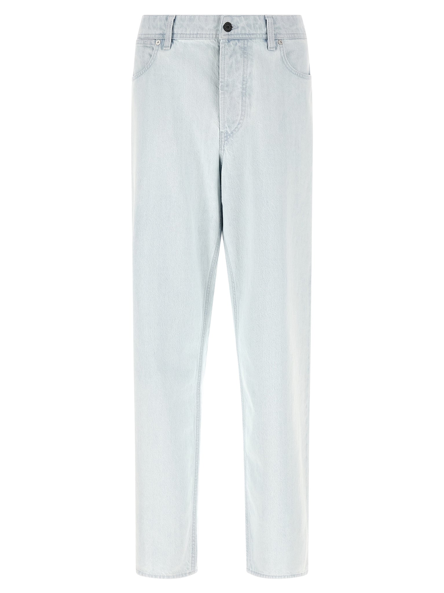 Indigo denim jeans in bleached cotton with wide and straight leg, Front button closure, Five pockets, And logo badge on the back. Size and Fit - Loose fitMade in: Romania