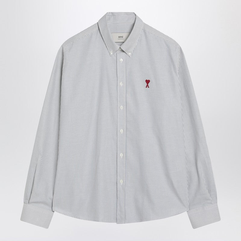 Shirt by Ami Paris in cotton, featuring sky blue and white cream stripes motif, red Ami De Coeur embroidery on the chest, classic collar, front button fastening, long sleeves, buttoned cuffs and curved hem. Size and Fit - Il modello indossa la taglia L Misure modello: Altezza: 185 cm Petto: 105 cm Vita: 85 cm Fianchi: 100 cm