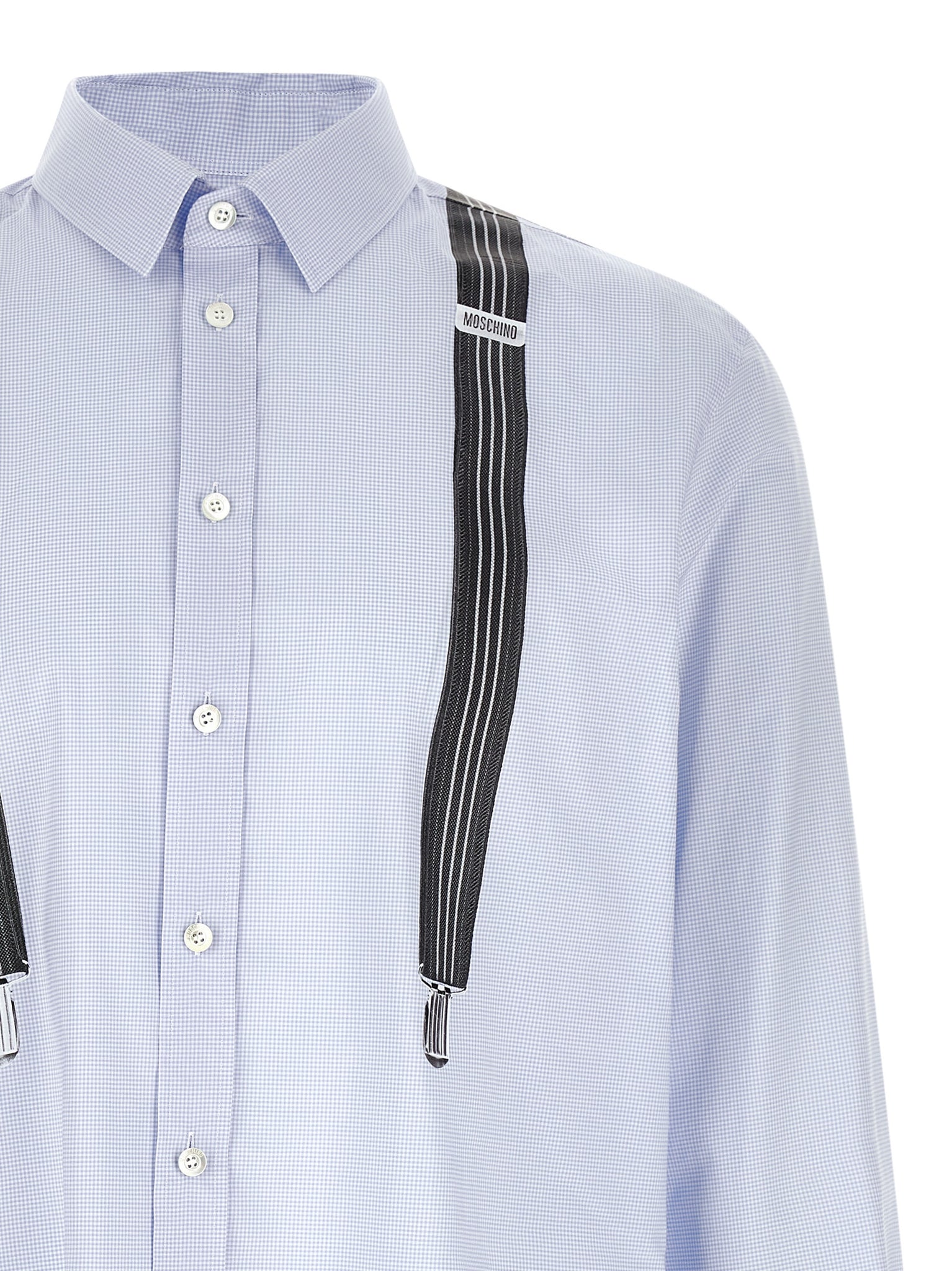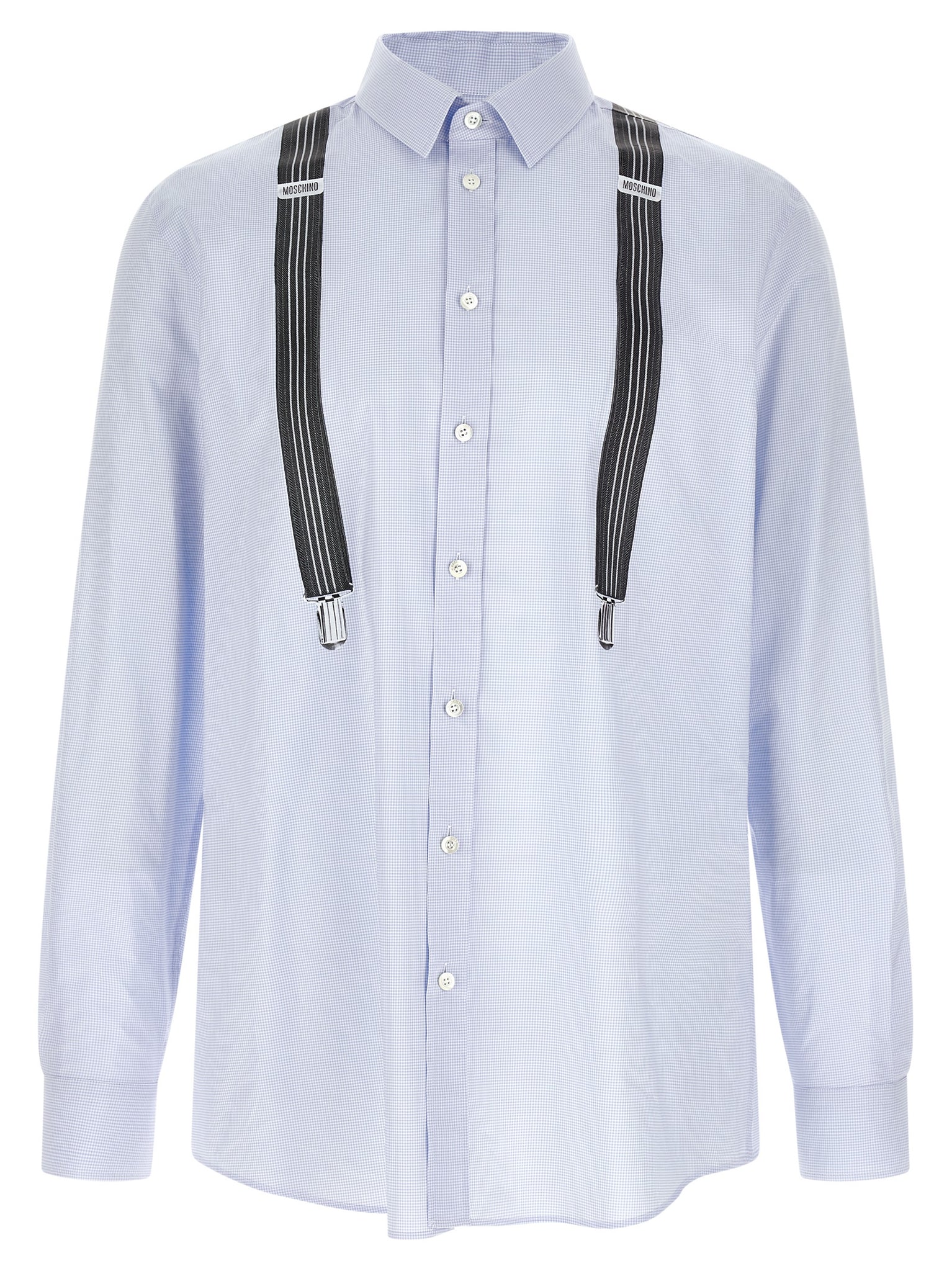 Cotton vichy shirt with trompe-l'œil print in the shape of suspenders on the front and back, front button closure, long cuffed sleeves and a slightly reduced shoulder. Size and Fit - true to size fit