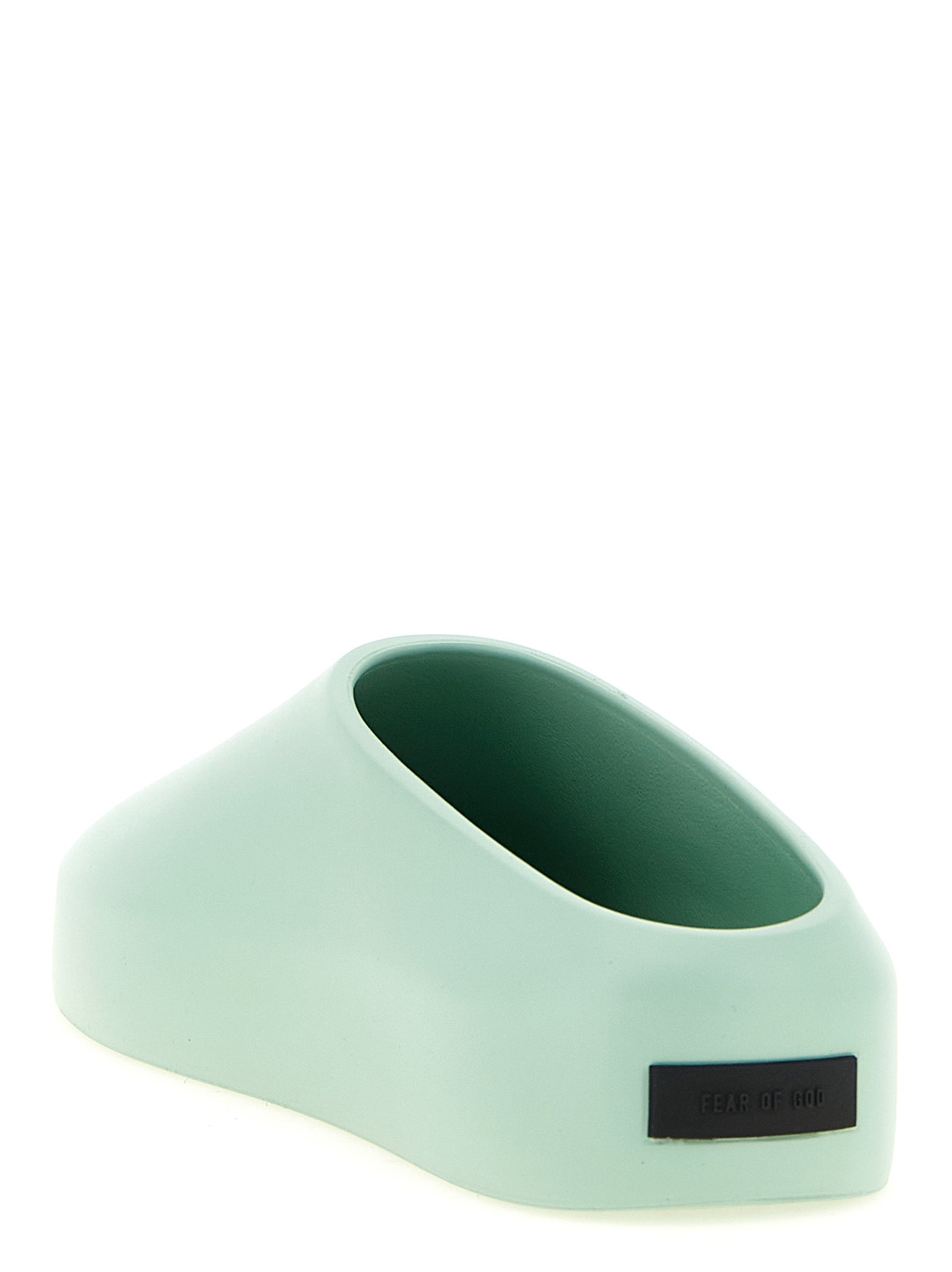 Discover slip-on comfort with the Fear Of God The California 2.0 Sabots in green, featuring Extrabounce foam for responsive cushioning and a contrasting rubber logo patch on the heel that reinforces brand identity. The rounded toe and easy on/off silhouette deliver everyday wearability for adult men, while EU MEN sizing ensures precise fit—consult size guide for conversions. LDin, construction details support durable use without sacrificing lightweight feel, making these ideal for casual routines and travel.