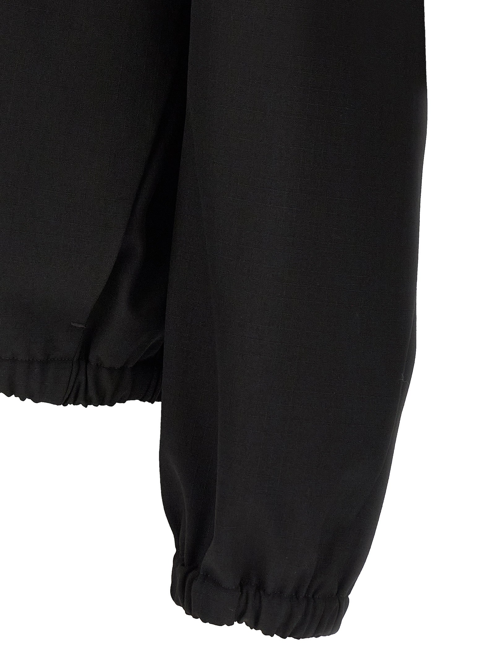 Discover a refined half-zip sweatshirt crafted from virgin wool ripstop that balances warmth with structure and a high neck for added coverage. The design uses dropped shoulders, elastic cuffs and hem to improve fit and ease of movement while integrated pockets add everyday utility. A tone-on-tone leather patch with an embossed logo provides subtle branding without disrupting the clean black silhouette.