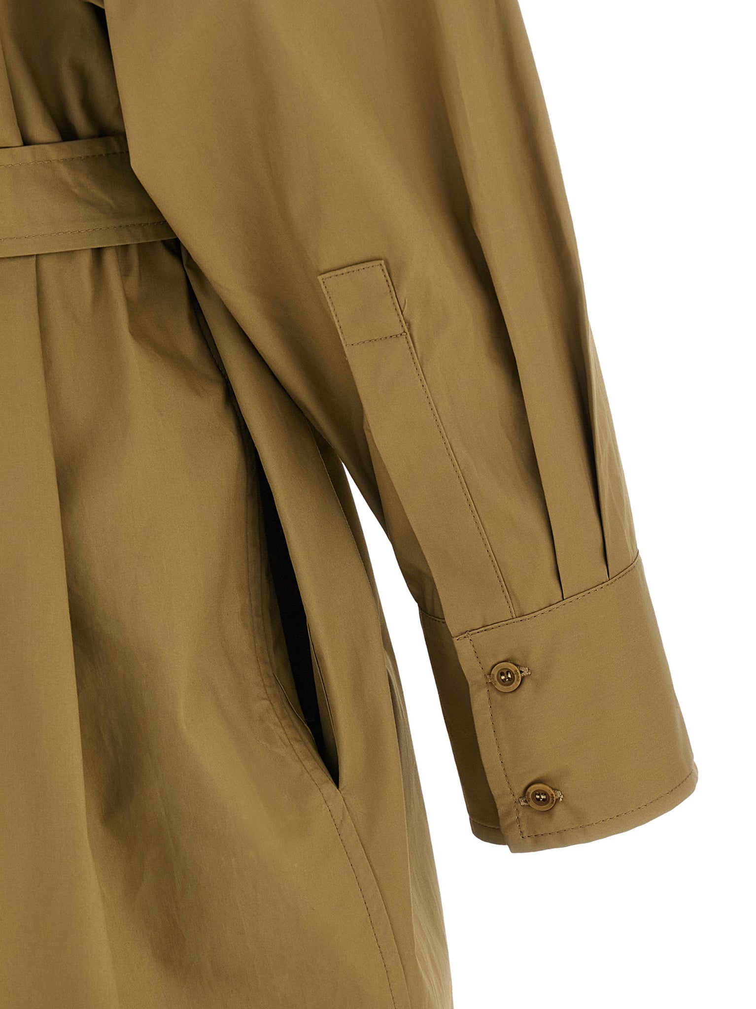 Chemisier midi dress in cotton poplin with open collar, Long sleeves with cuffs and dropped shoulder, Pockets, Front and side slits, Rounded hem, And removable matching belt. Size and Fit - Oversized fit