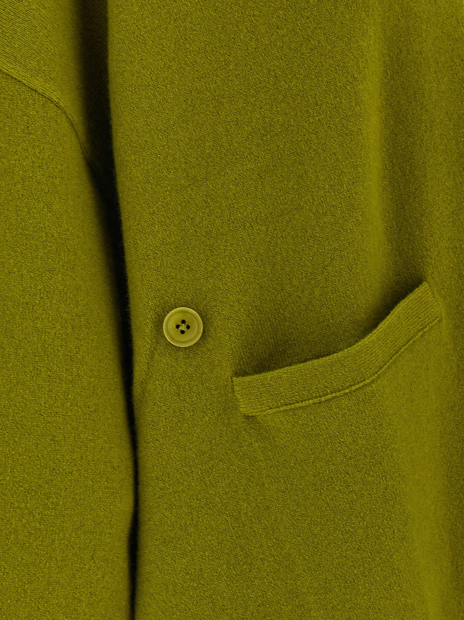 Discover a loose-fit cashmere-blend cardigan with a V-neck and corozo front buttons plus an additional side button to alter the silhouette. Side slits, pockets, dropped shoulders and long sleeves with cuffs add practical comfort while the one-size design aims to flatter varied body types. This green knit from Extreme Cashmere balances wearable ease with tailored details for adaptable layering.