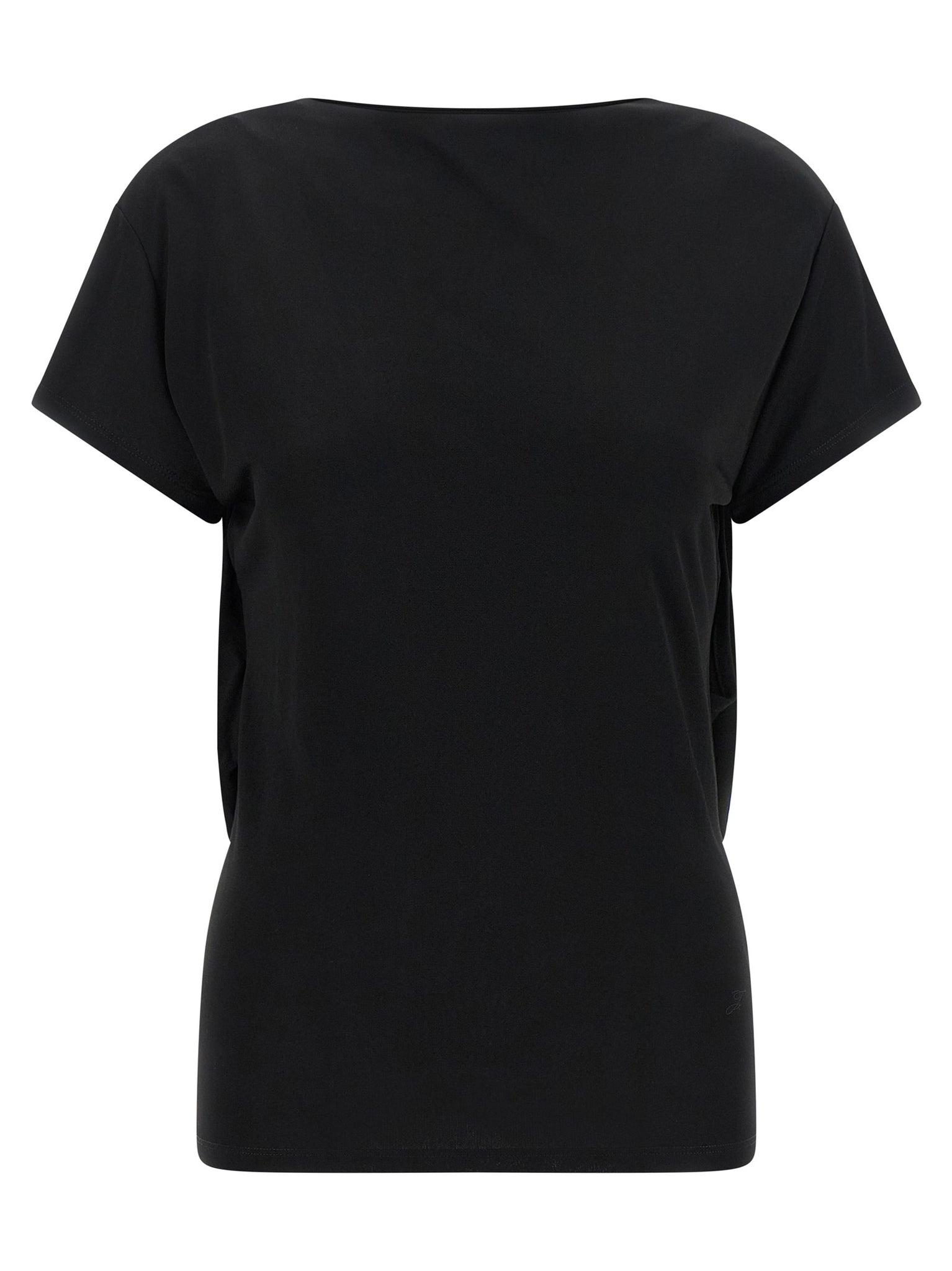 'le haut mistral' fluid viscose jersey t-shirt, Tone-on-tone logo embroidery at the front, Boat neck, Wide cut-out and back draping, And short sleeves. Size and Fit - Slim fit