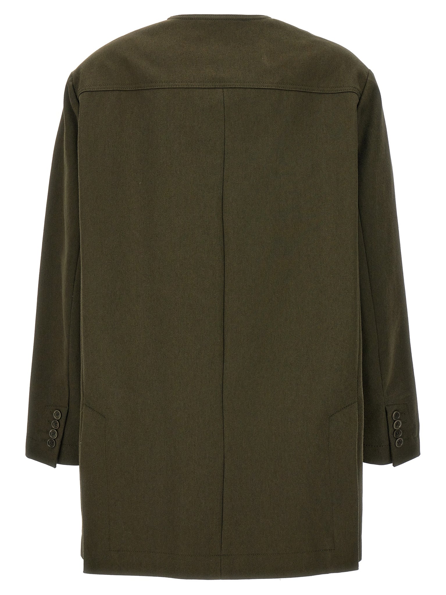 'recital' midi jacket in heavy cotton drill, Button closure, Pockets, Crew neck, Long sleeves. Size and Fit - Oversize fit