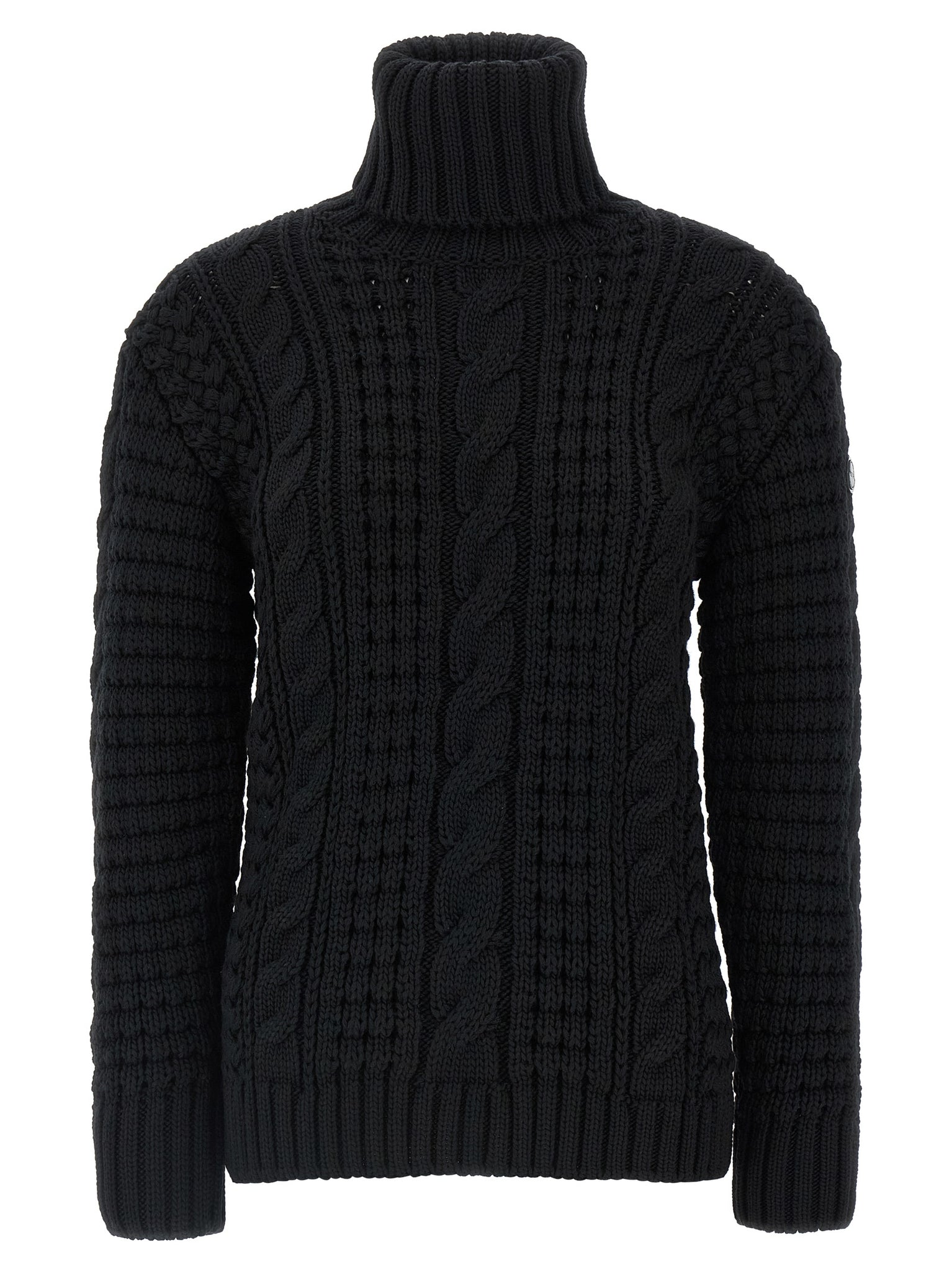Moncler x edward enninful tricot turtleneck sweater in heavy knitted virgin wool, Turned-up turtleneck, Long cuffed sleeves and a tone-on-tone logo patch appliqué. Size and Fit - true to size fit