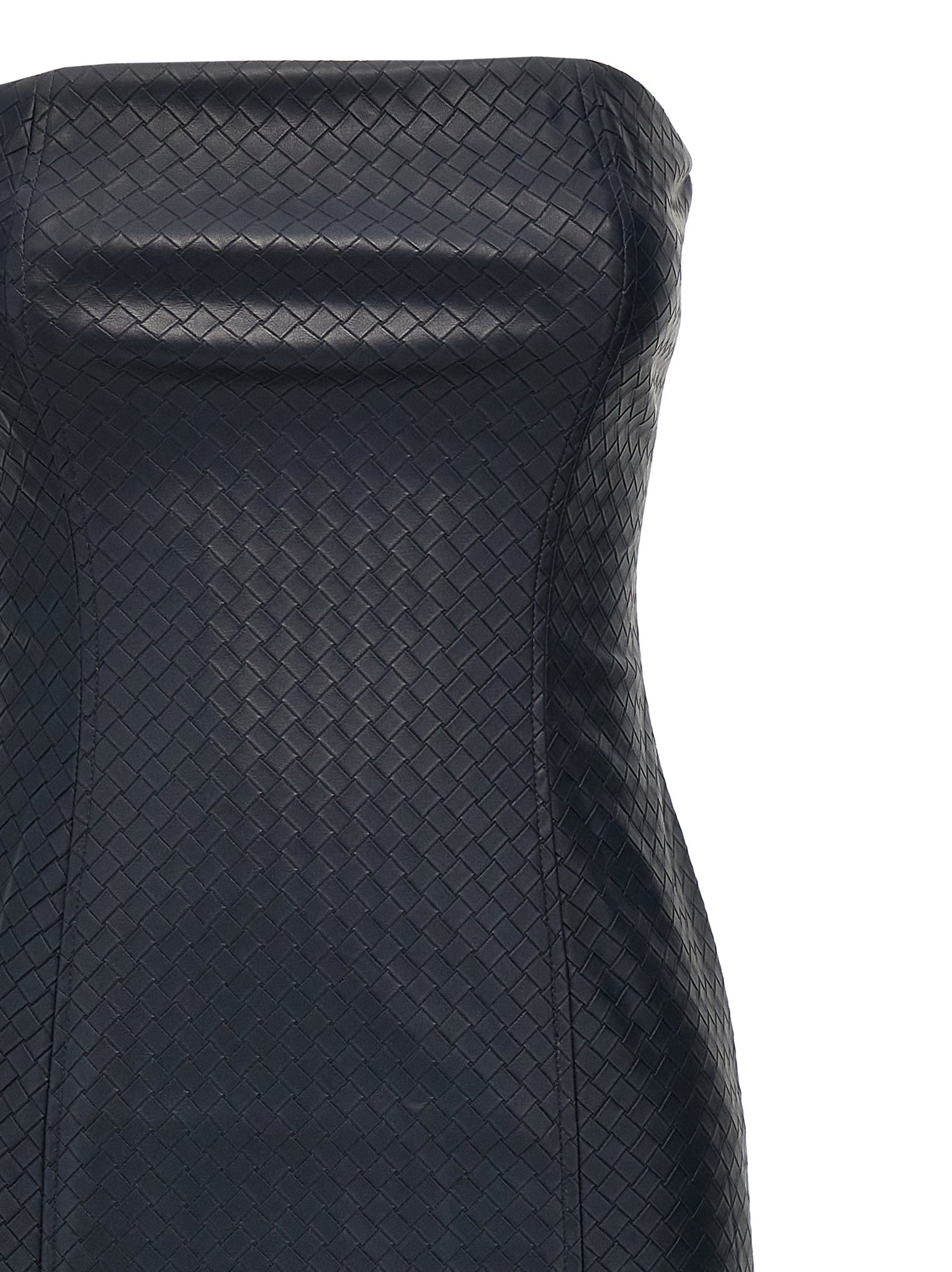 'midi braided' off-the-shoulder dress in woven leather-effect fabric with zip closure and back split. Size and Fit - True to size fit german size
