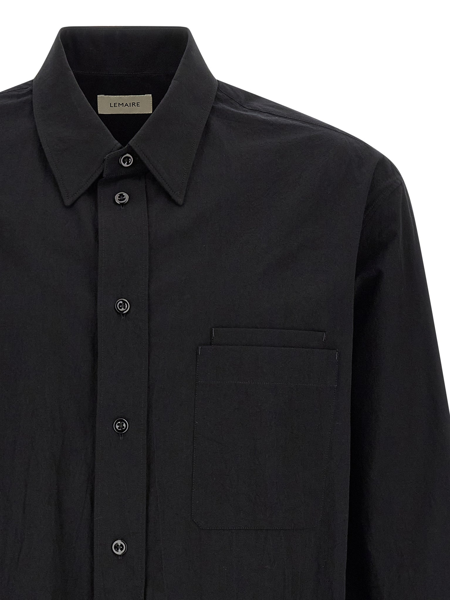Lemaire Two Pocket Shirt — Black Cotton Crepe (Men)