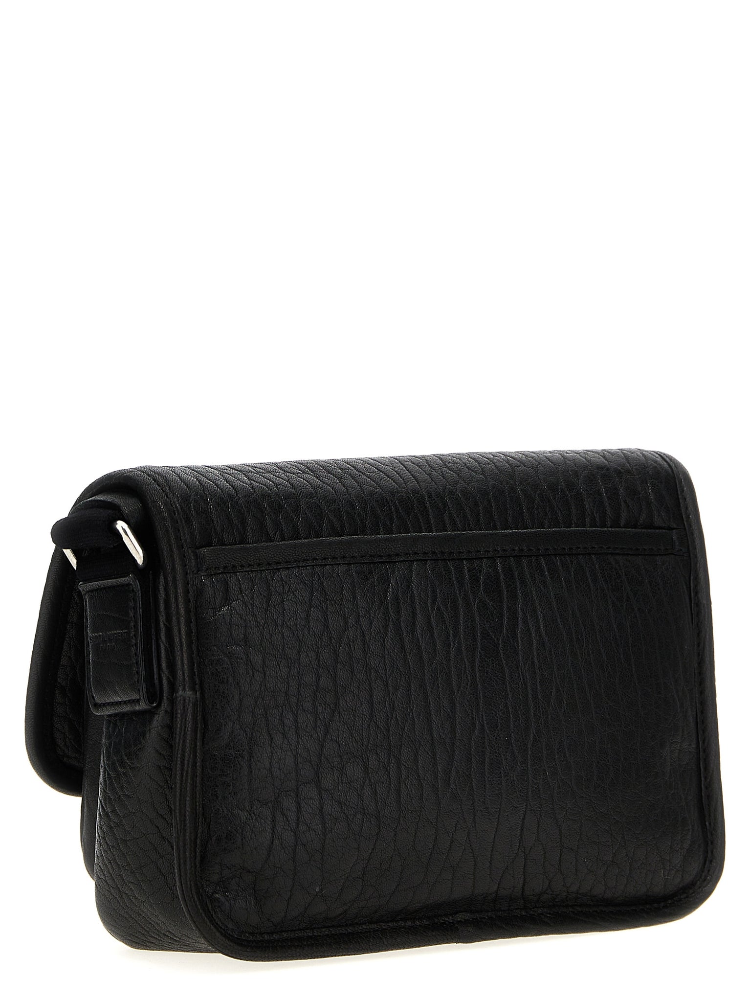 'Messenger Small Niki' hammered leather crossbody bag, magnetic flap closure, metal logo detail, adjustable shoulder strap. Size and Fit - W 21 x H 15 x D 6 cm