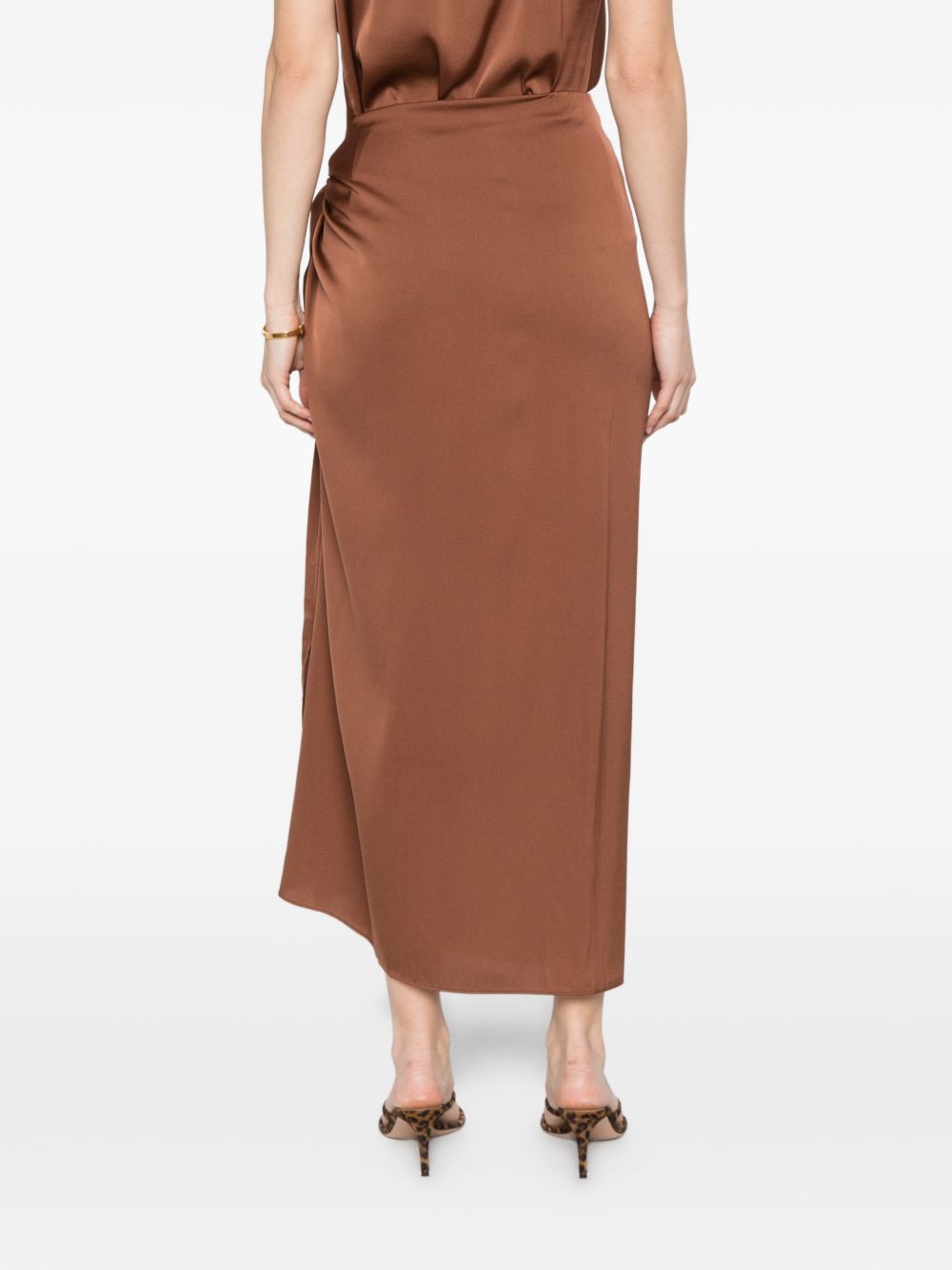 Discover a light brown, pencil-style, form-fitting skirt from Silk95Five that sits at a mid-rise waist and finishes with a straight hem for a streamlined silhouette. The French Tie detail adds a subtle, adjustable accent that refines the fit while maintaining clean lines. Wear it for polished daytime looks or elevated evenings to compare styling options that suit your wardrobe. Expertly crafted silk offers lightweight drape and breathable comfort for all-day wear.