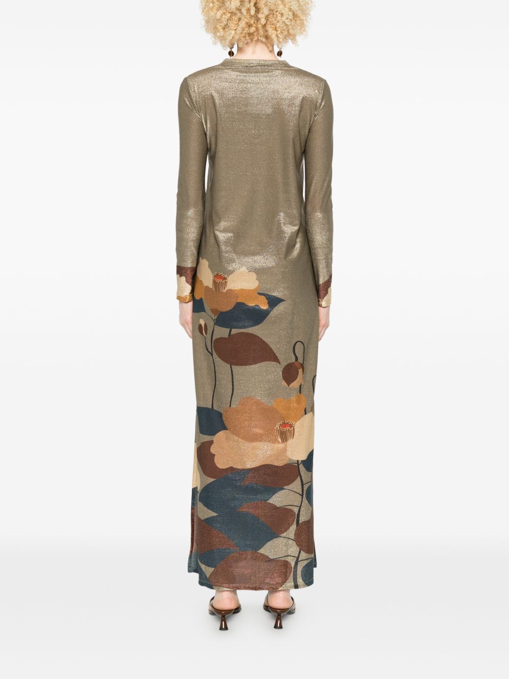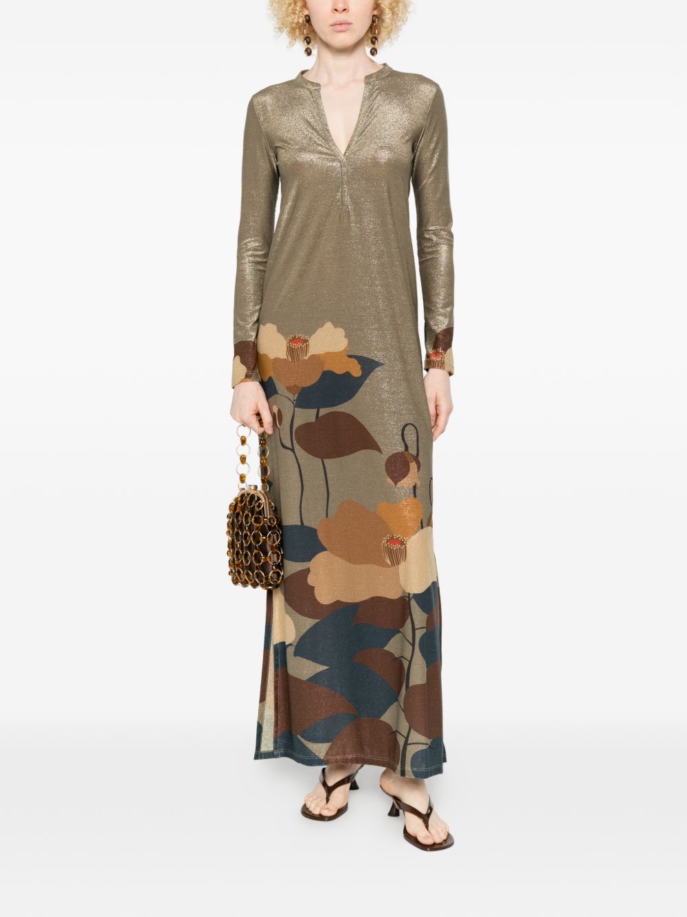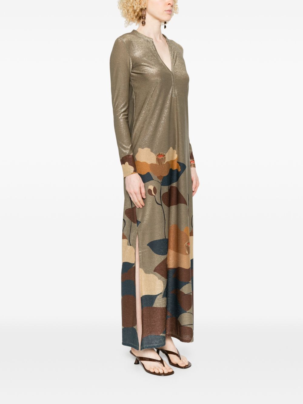 green/multicolour floral print side slit long sleeves V-neck Ninfa kaftan dress.Made in: Spain