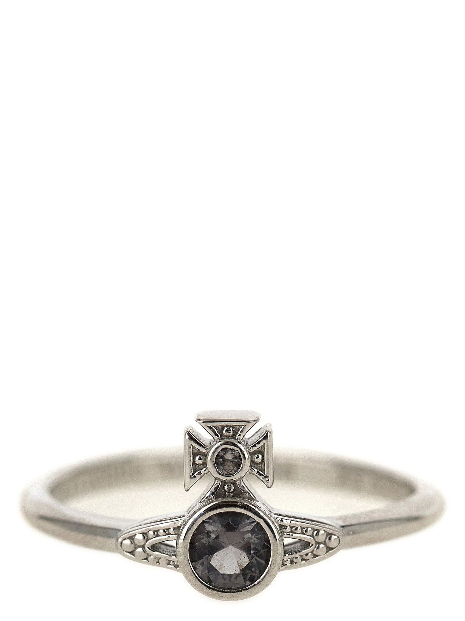 'london orb' ring in silver with orb-shaped band with black crystal. Size and Fit - Height: 0.63 cm, width: 1.01 cm