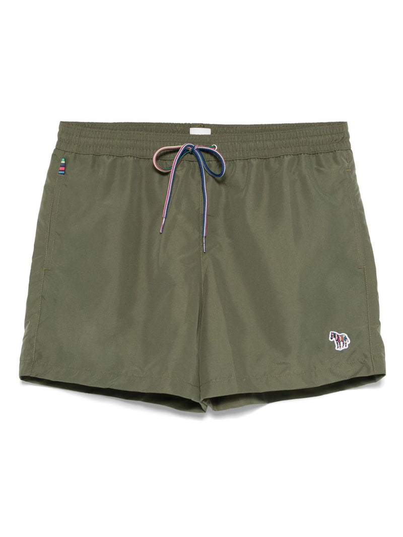 Paul Smith Sea Green swim shorts combine a secure elasticated drawstring waistband with a discreet embroidered zebra logo on the front for understated branding. They fit true to size—choose your regular size; model is 1.84m (6ft 1in) wearing M. Designed for adult men, these swim shorts are stylish and functional for beach or pool use. Take care to try swimwear on over your own garments when fitting.