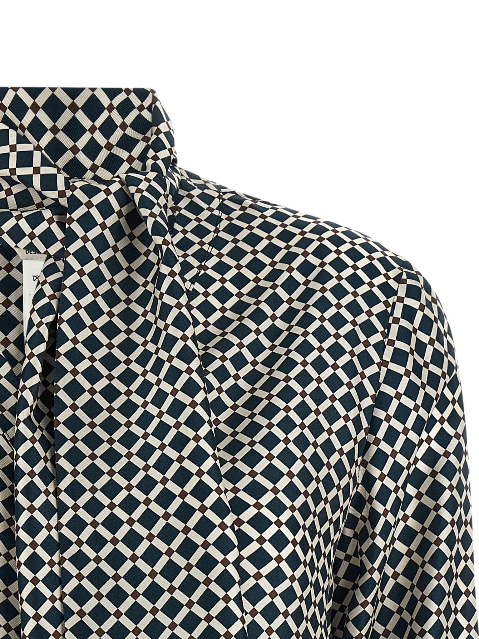 Smmvittoria shirt in pure patterned silk twill, V-neck, Matching sash with removable scarf effect, Concealed front button closure, Long cuffed sleeves. Size and Fit - true to size fitMade in: Romania