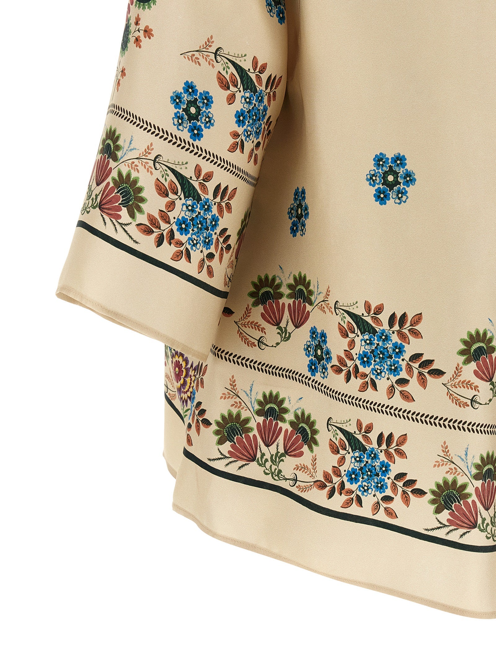'wkdsamba' blouse in pure patterned silk twill with slightly flared silhouette, Round neckline with back button closure and teardrop cut-out detail, Wide 3/4 sleeves, Back central counterfold. Size and Fit - Comfort fitMade in: Morocco