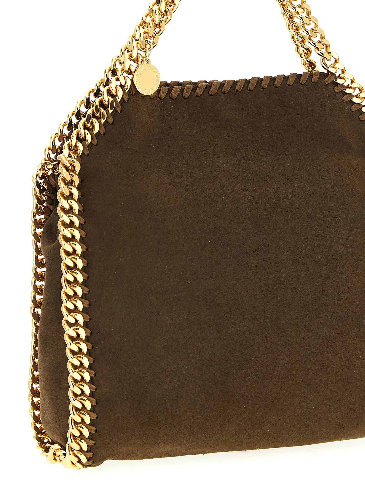 'falabella mini' crossbody bag in suede effect fabric with magnetic closure, Double fixed chain handle and chain shoulder strap. Sustainable: made without the use of leather, Respecting cruelty-free ethics. Size and Fit - W 27 x H 24 x D 10 cm