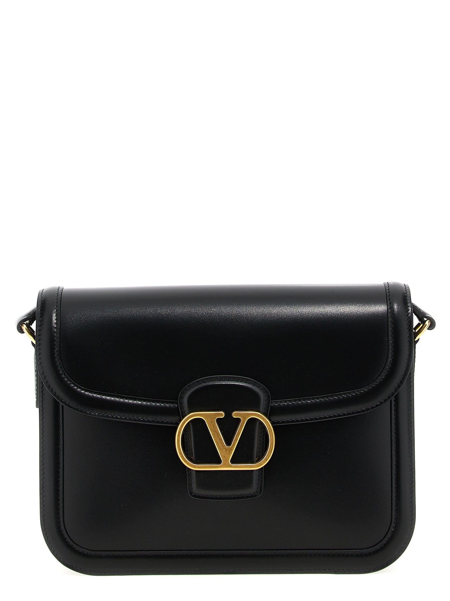 '9to5' shoulder bag in smooth calf leather, Magnetic flap closure with metallic vlogo signature with front antique finish, Adjustable shoulder strap. This model has an additional portion of shoulder strap that can be attached to the bag thanks to buckles. Size and Fit - W 24.5 x H 18.5 x D 8 cm
